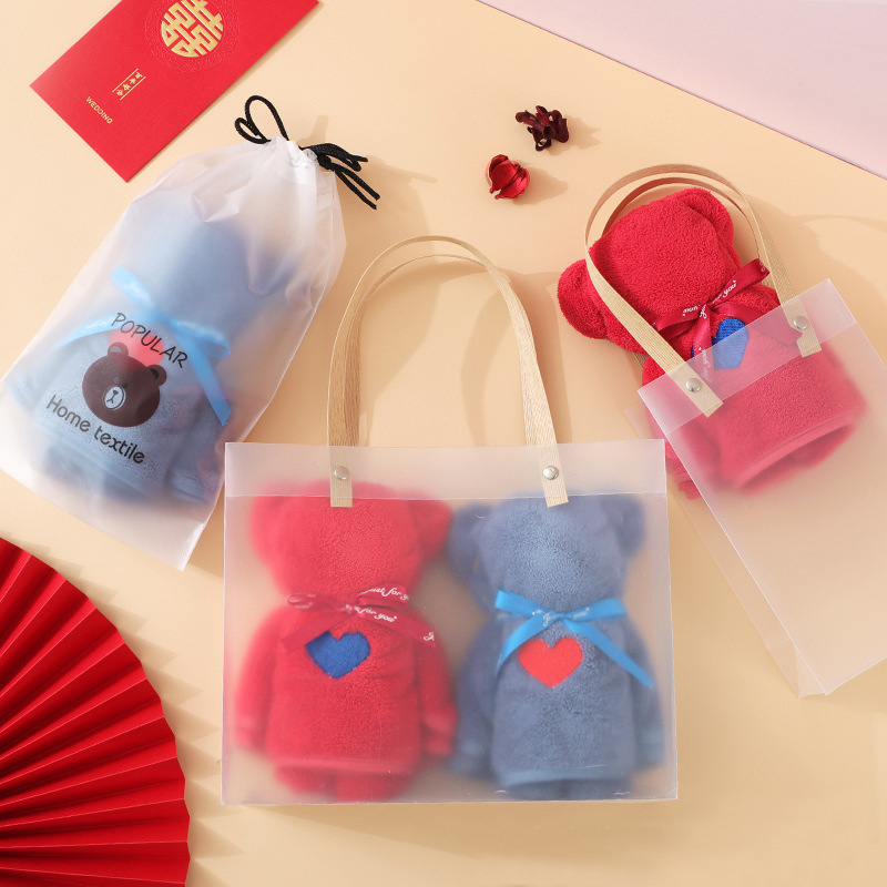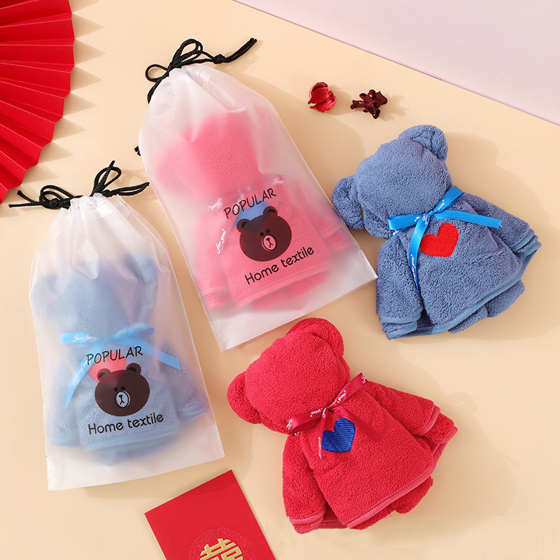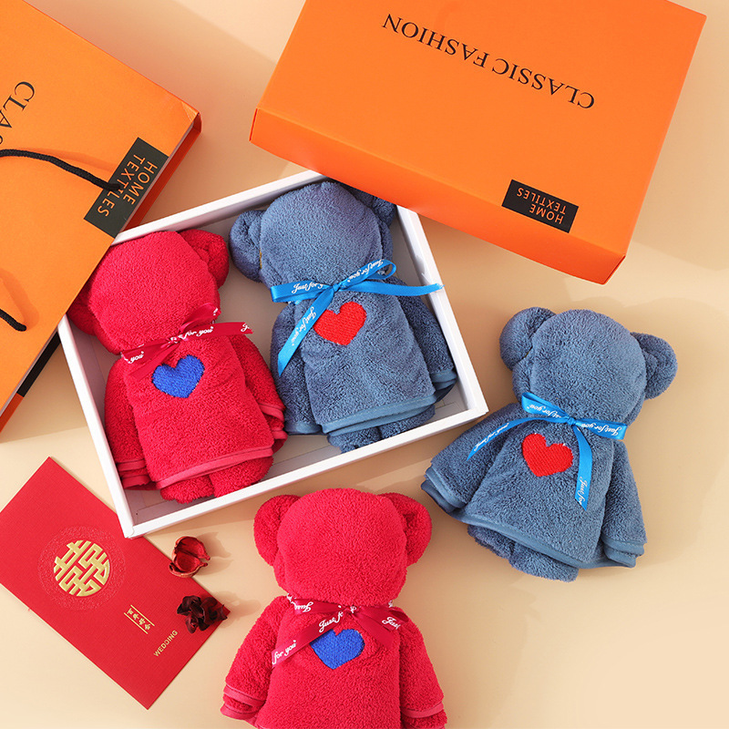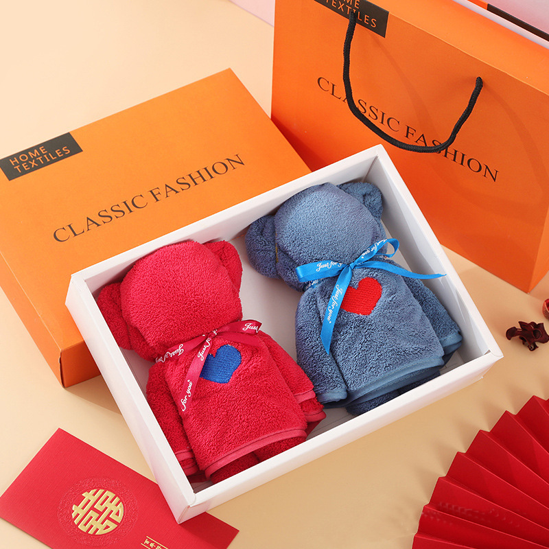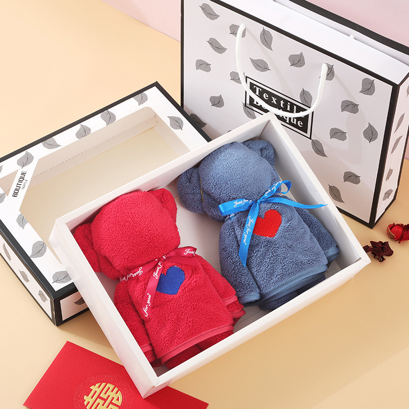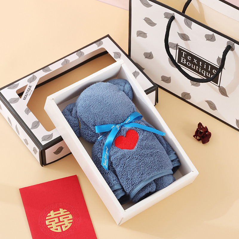 批发小熊礼盒毛巾珊瑚绒吸水伴手礼结婚回礼喜铺毛巾礼盒可印logo