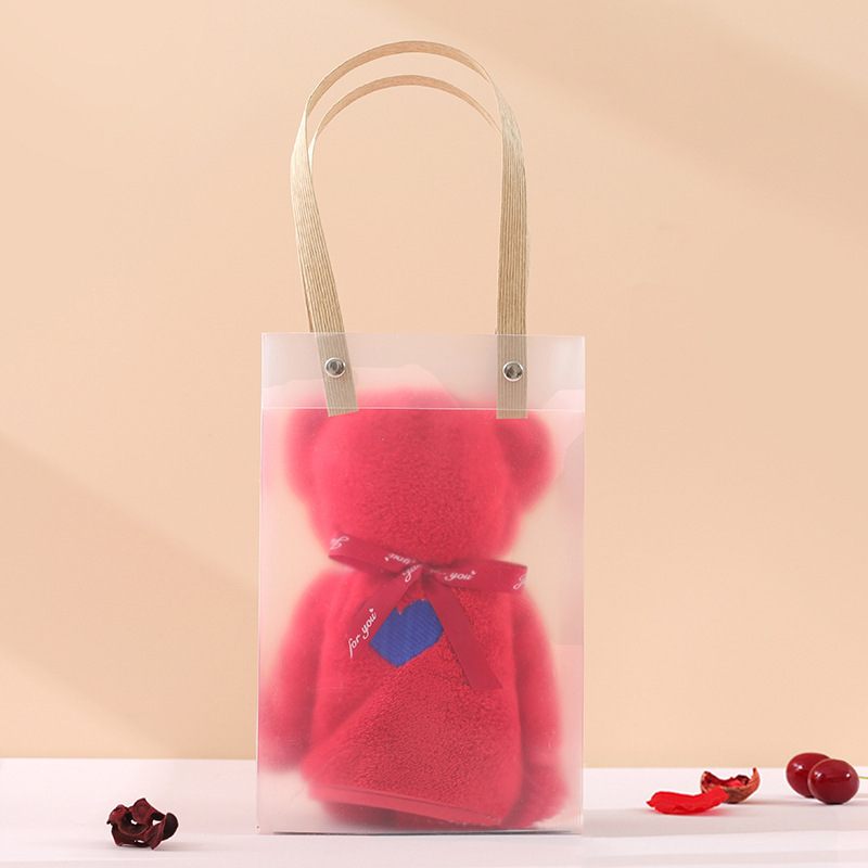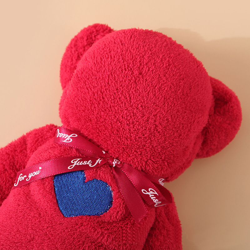 サンゴのベルベットの愛の縁のベアーの形のタオルのお土産のギフトボックスのアイデアのお返しのかわいいプレゼントのタオルの卸売り