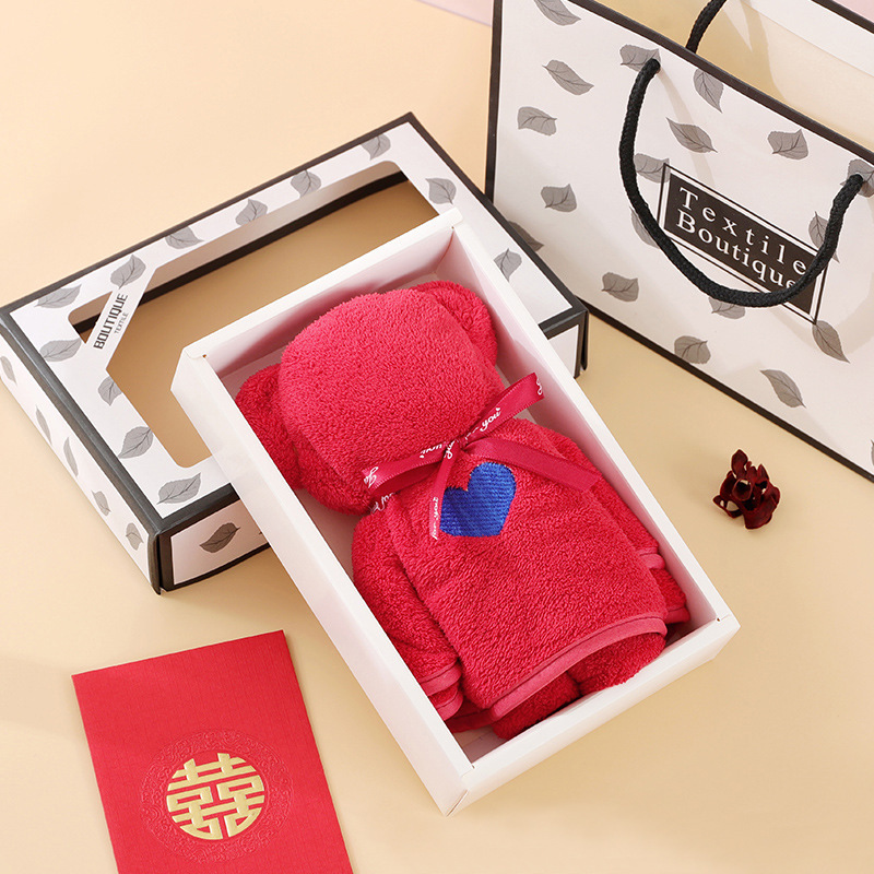珊瑚绒タオル・バスタオルギフトボックス3点セット、純綿タオル、従業員福利厚生、刺繍入り結婚式記念品ギフトボックス