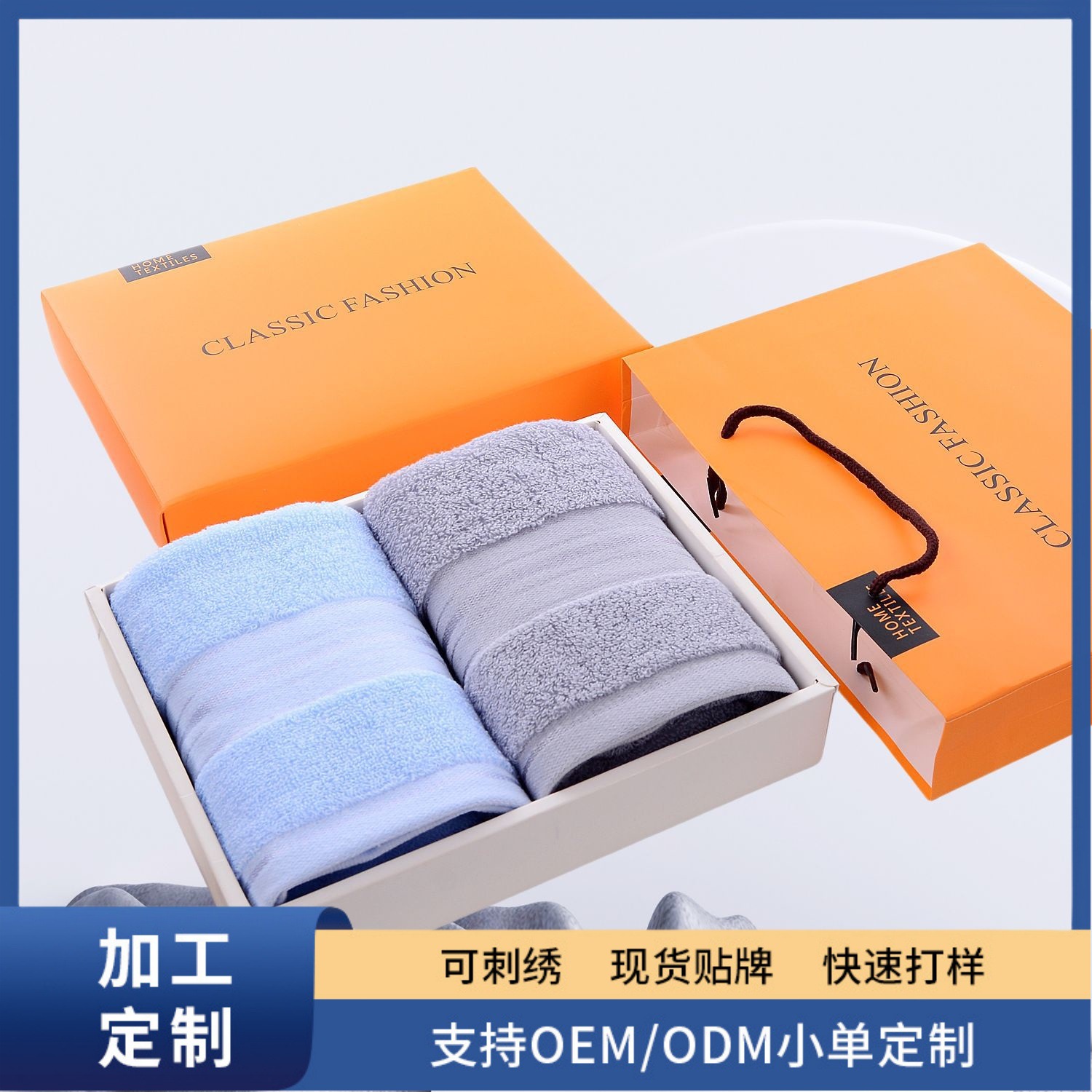 卸売り純綿家庭用贈答品タオルカバーボックスタオル礼箱二条装ホットスタンプ刺繍ロゴ銀行お土産