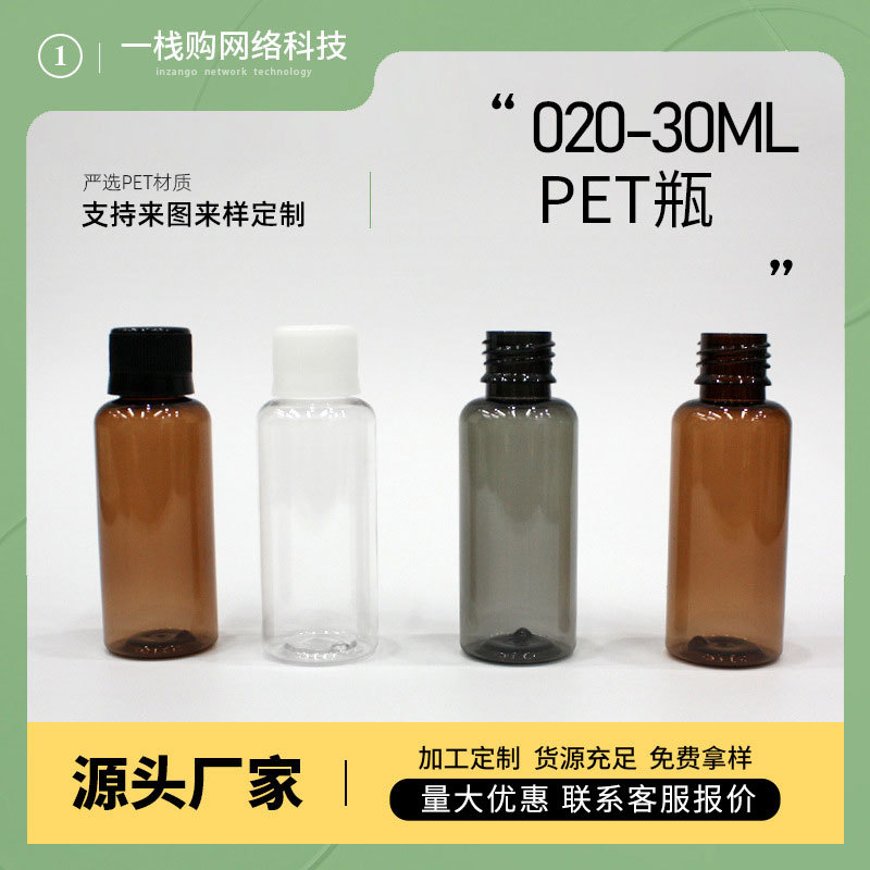 30mlPET圆肩瓶包材塑料瓶配锁盖 精油化妆品小样分装瓶