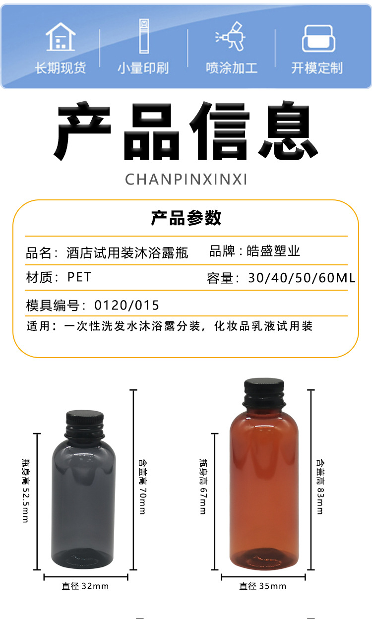 卸売り30ml 40ml 50ml 60mlホテルシャンプー入浴剤分注瓶試用ローションサンプル瓶