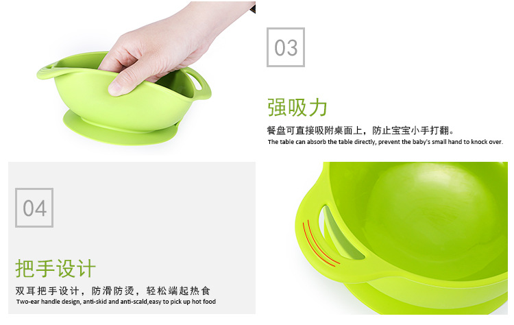 強力吸盤碗携帯補助食器シリカゲルソフトスプーン耐高温防転食皿赤ちゃん子供飼育食器