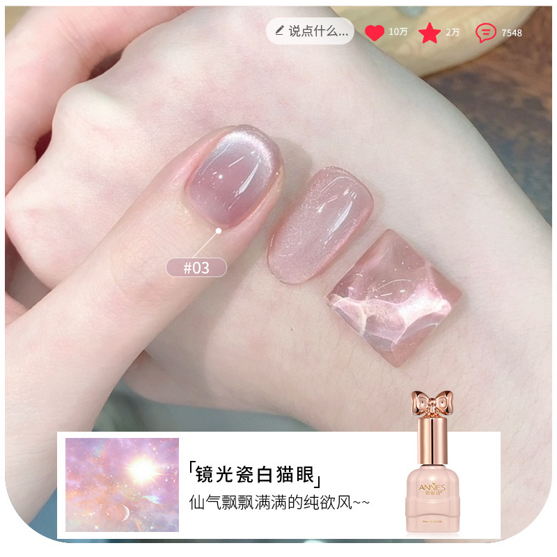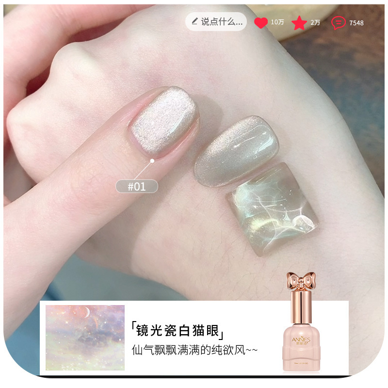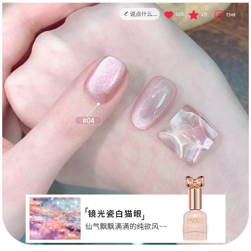 恩尼詩爆金ガラス珠猫眼マニキュア2025新氷透白湯猫眼ゴムネイルアート専用
