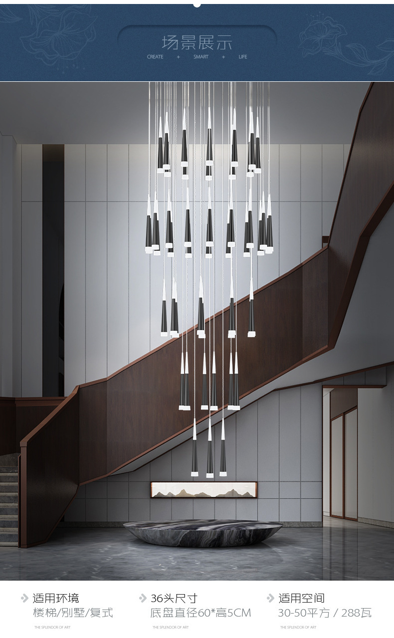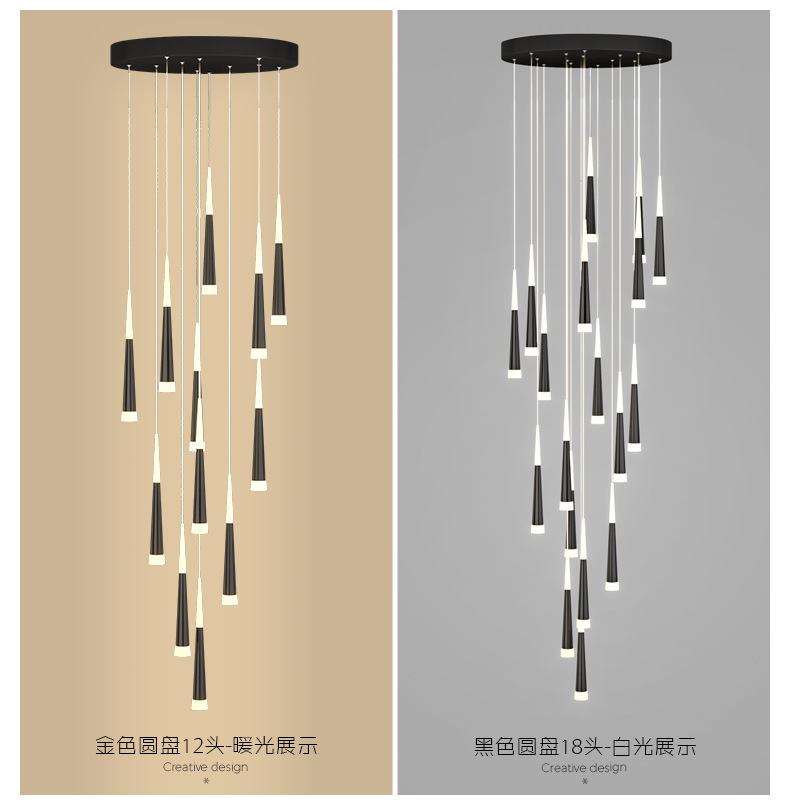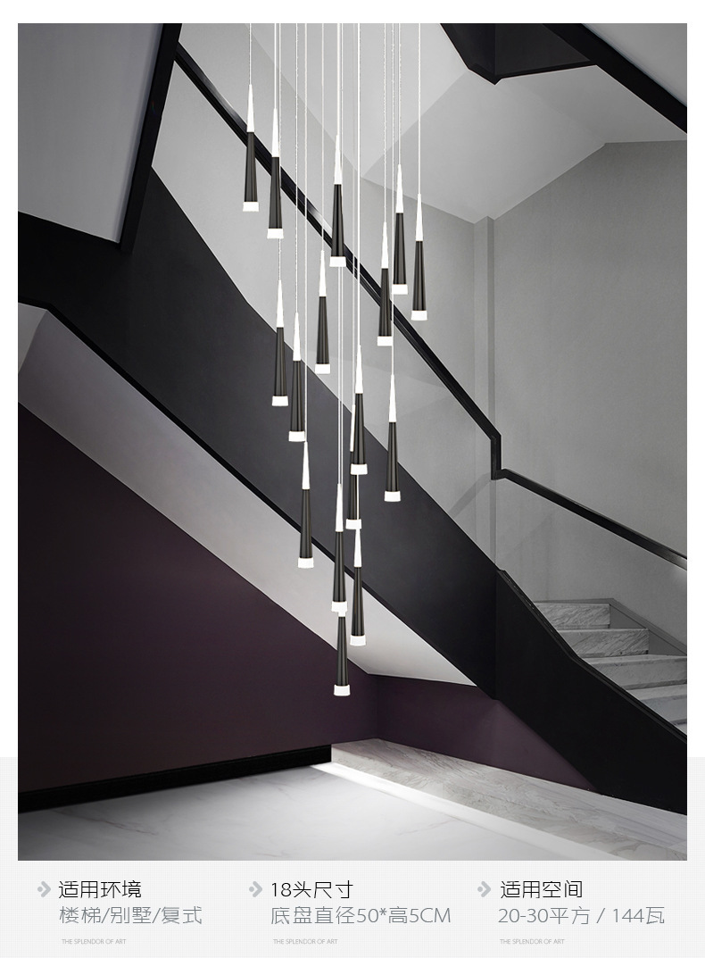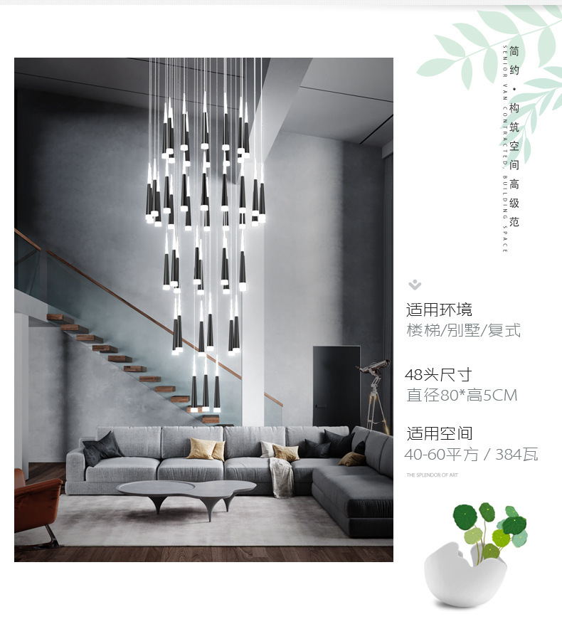 広東中山灯具階段長シャンデリア別荘食堂灯北欧ファッション大気複式loft商用灯