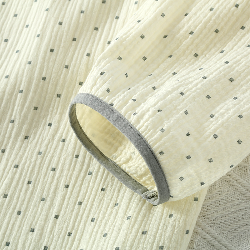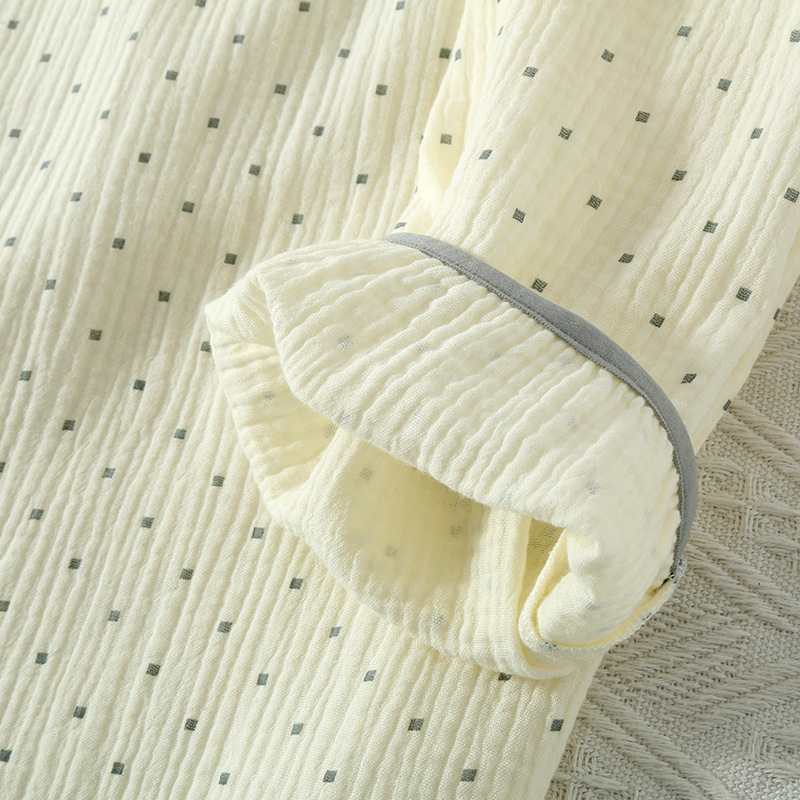 和装帯春秋パジャマ男七分袖二重綿ホームウェア夏ガーゼ純色日系スーツ