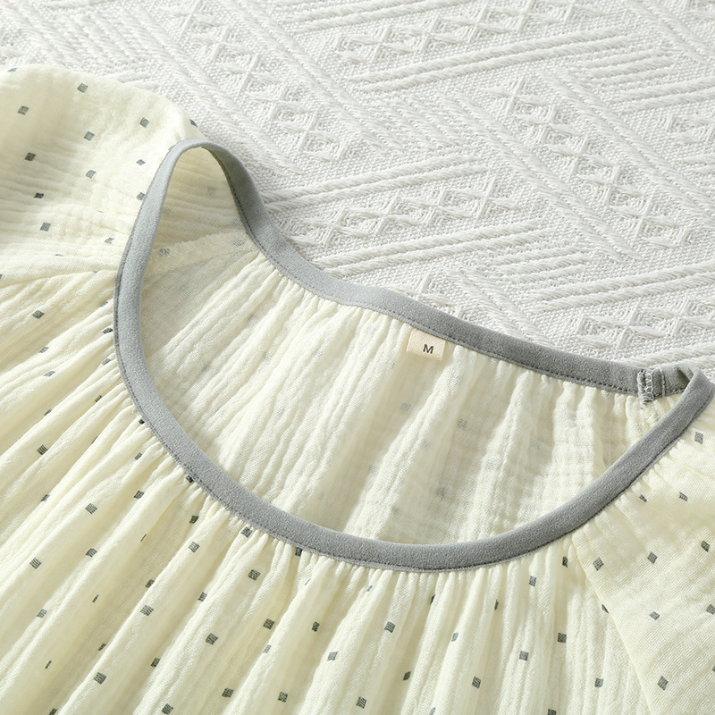 寝ているスカートの綿糸の女性の夏の長袖のスカートの純綿の縮みの布の寝ているスカートの女性の心地良いゆったりしているスカートは家のスカートを着ることができます。