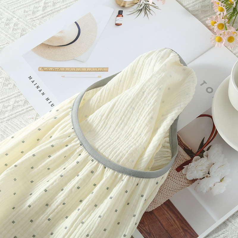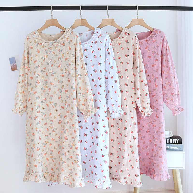 春夏の綿の小さい花の寝スカートの女性のかわいい風のちりめんのスカートの4色のガーゼの家庭の長いスカートは快適に汗を吸います。