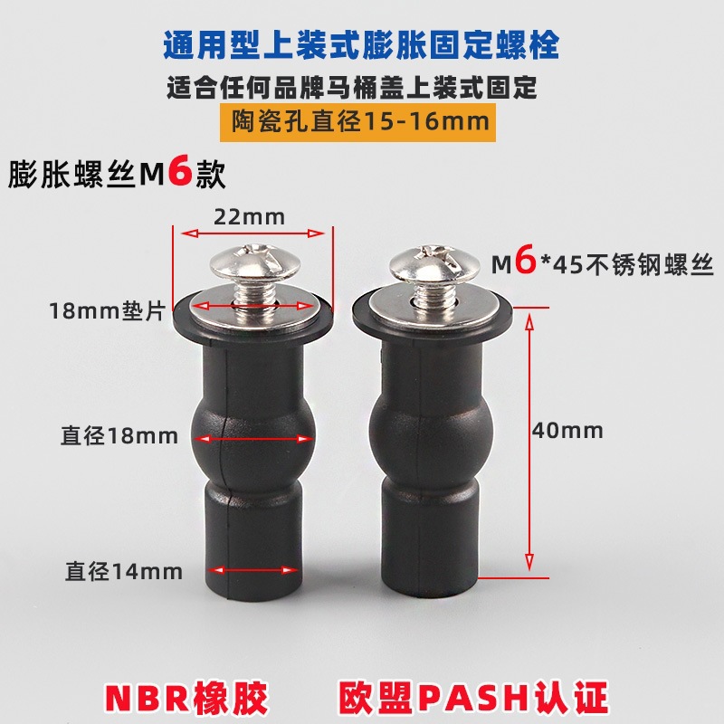 トイレ便座固定付属品、ネジカバー、ゴム膨張部品、ユニバーサルゴム膨張スリーブ