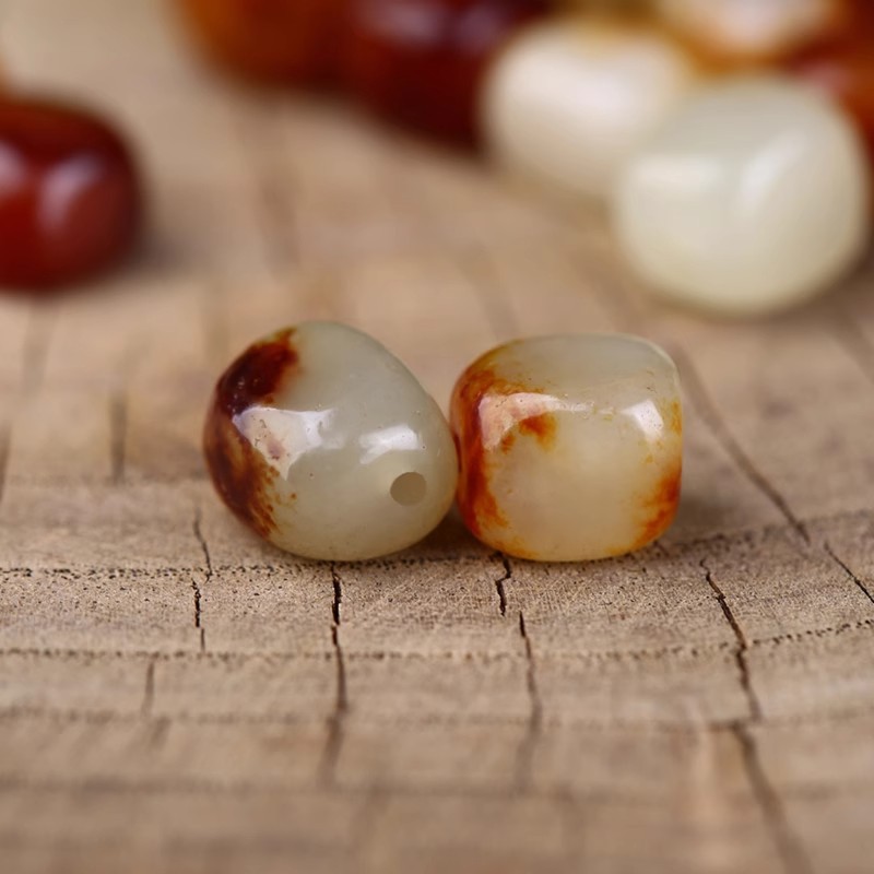 新疆带皮和田玉随型散珠子精选俏色颗颗带皮diy串珠配珠文玩隔珠