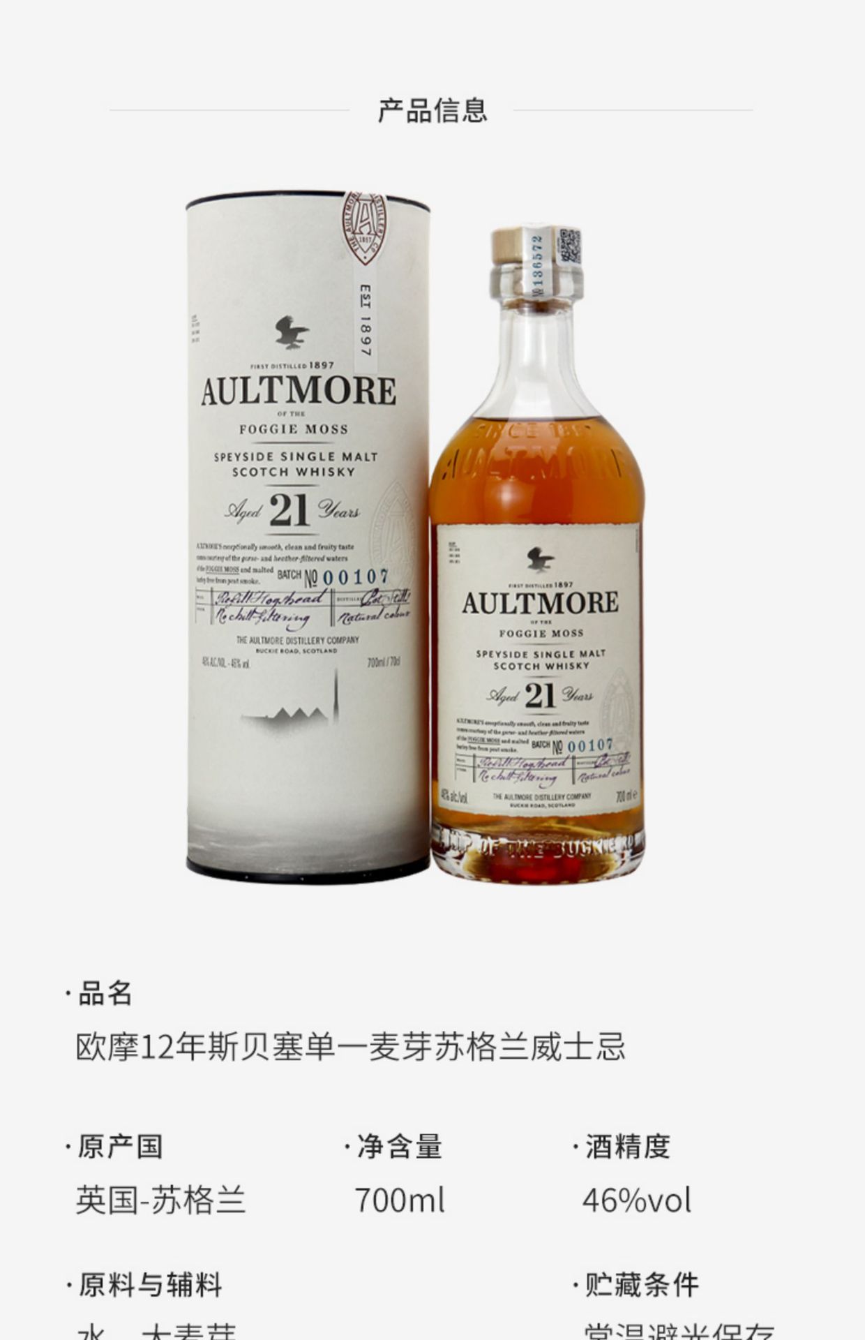 欧摩21年斯貝塞単類モルトスコッチウイスキーイギリス原装輸入洋酒