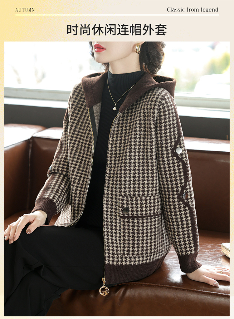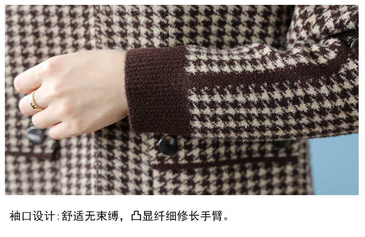 若いお母さんの秋冬服のファッションの短いニットのコートの中で老年の婦人服の洋派のカーディガンのジャケットの格子の上着