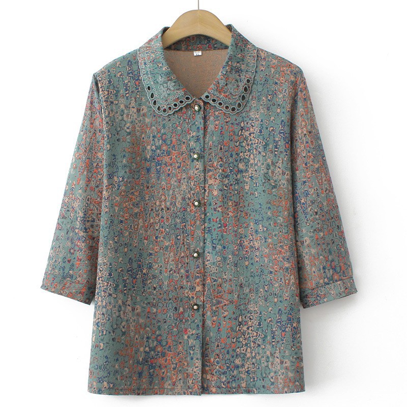 お母さんの春と秋の雰囲気の小さいシャツの新型のシフォンのシャツの中で老年の婦人服の貴婦人の秋冬のファッションは上着を打ちます。