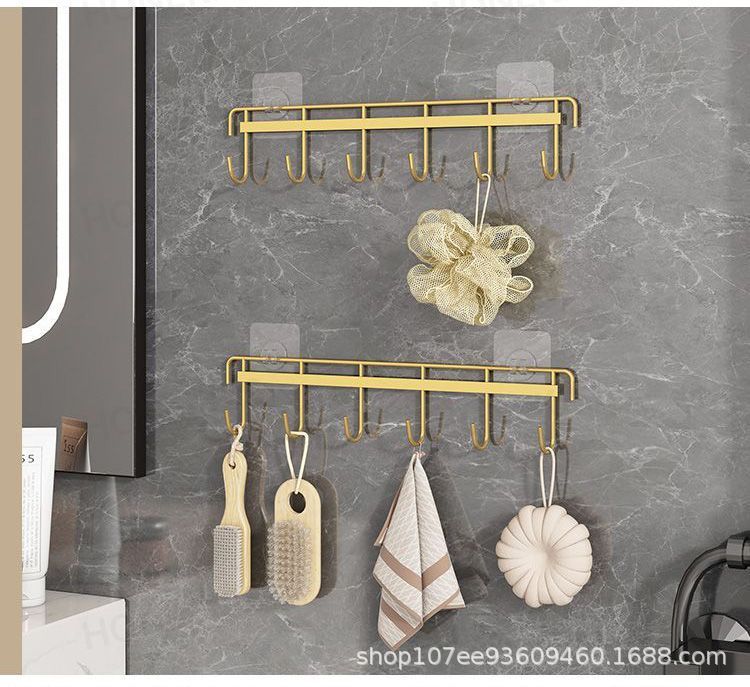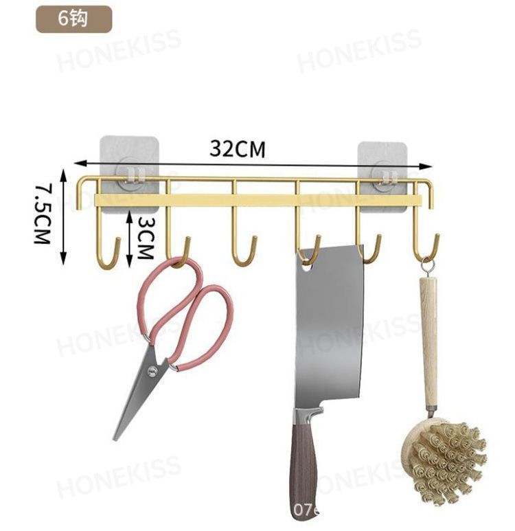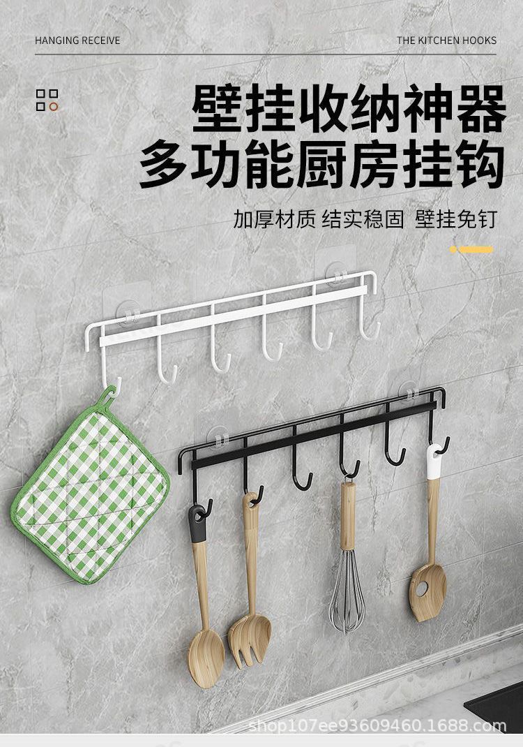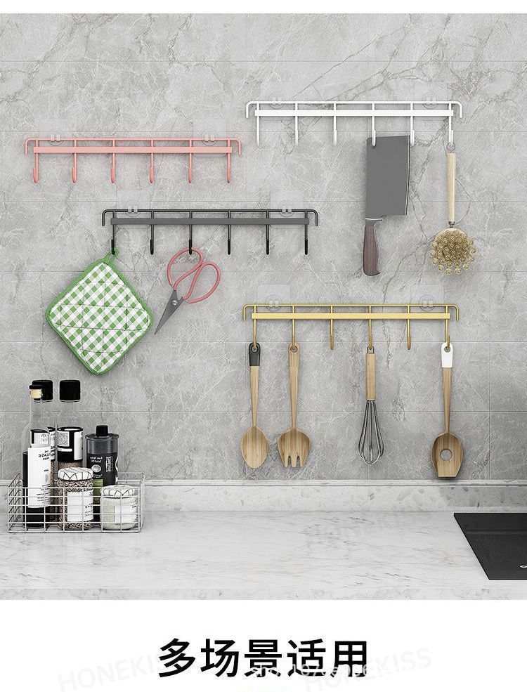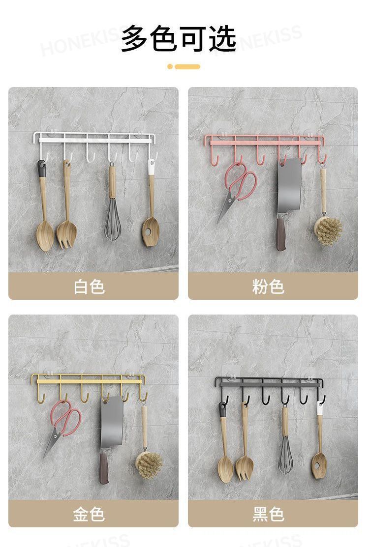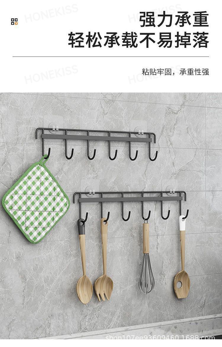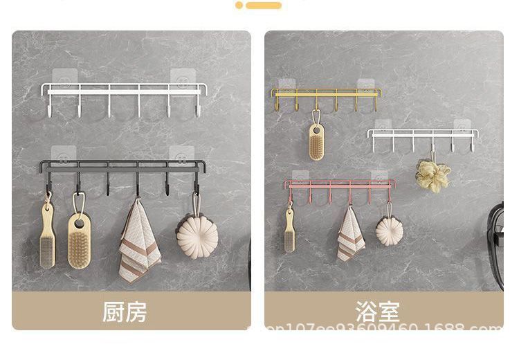 鉄芸六連フックキッチン強力フック家庭用浴室穴なし6連フック壁掛け無痕ビスコースフック