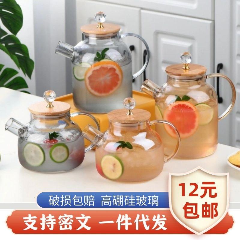 アマゾンクロスボーダー専用冷水ポット高ホウ素シリコン透明ガラス囲炉茶花ティーポット竹木蓋冷水ポット
