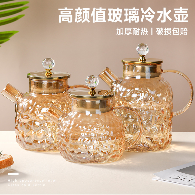 アマゾンクロスボーダー専用高ホウ素シリコンガラス冷水筒琥珀色冷水筒蘭陵壺大容量ティーポット