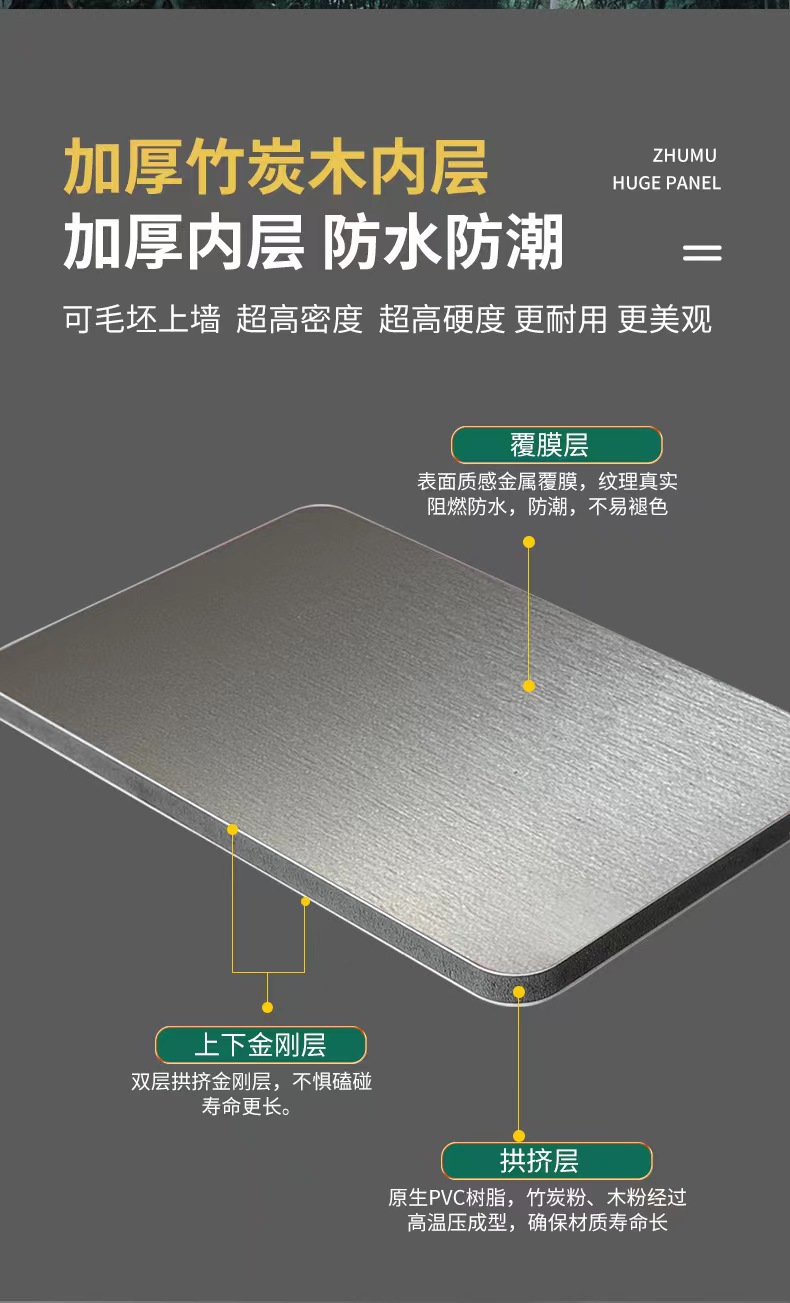 竹炭木金属板装飾カーボンクリスタル板ブラッシュウッド装飾板鏡面板シームレス室内装飾壁板