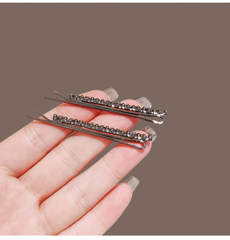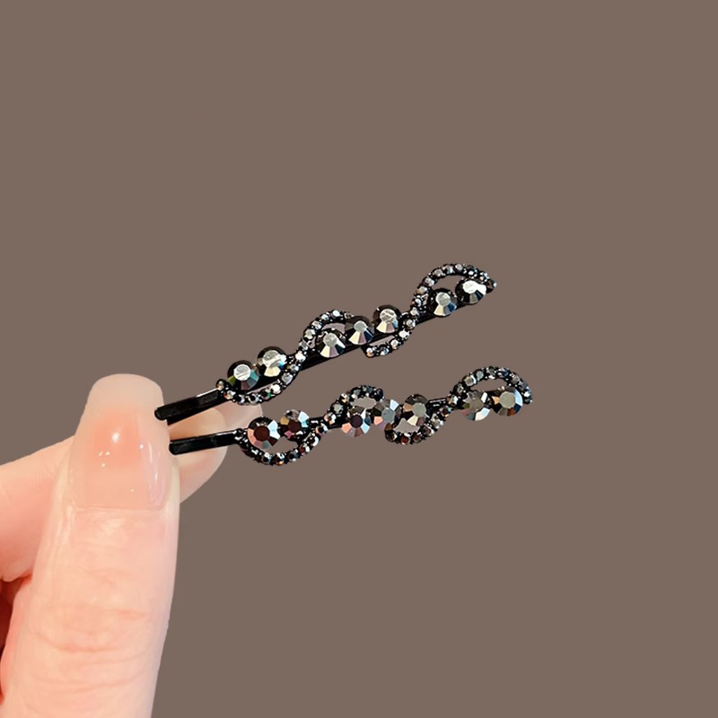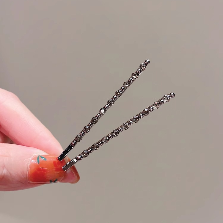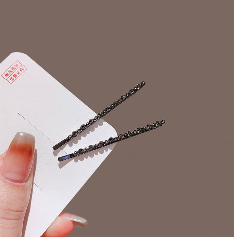 女性用の絶妙なヘアピン、黒のワンラインクリップ、ハイエンドのラインストーンサイドクリップ、ヘッドドレス、気質の髪の毛の前髪クリップ、ペアクリップ