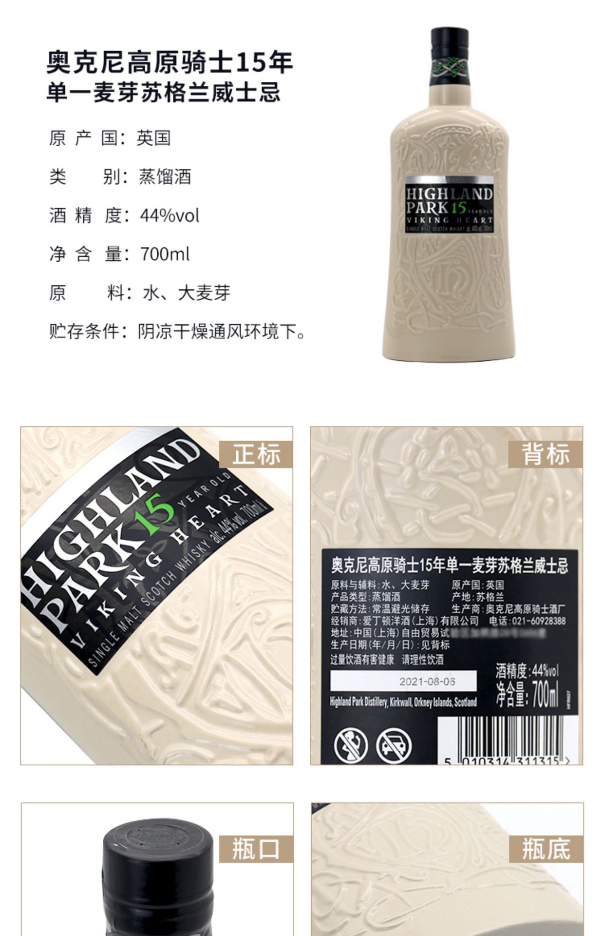 オークニー高原騎士15年シングルモルトスコッチ700mlイギリス輸入洋酒