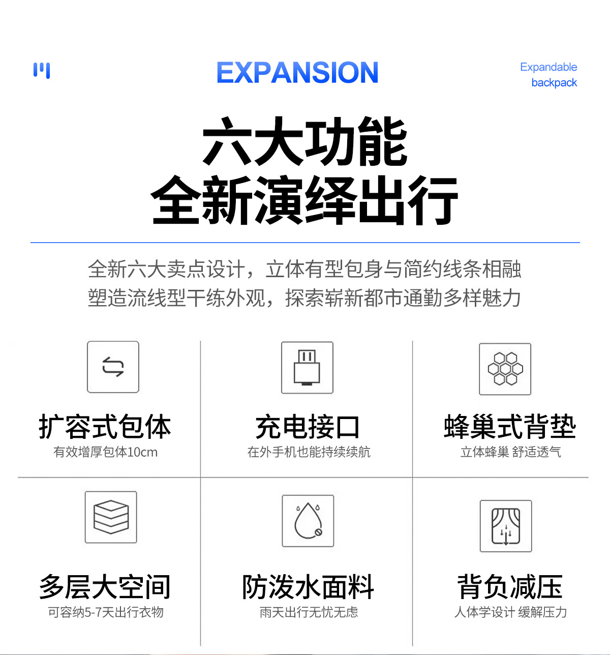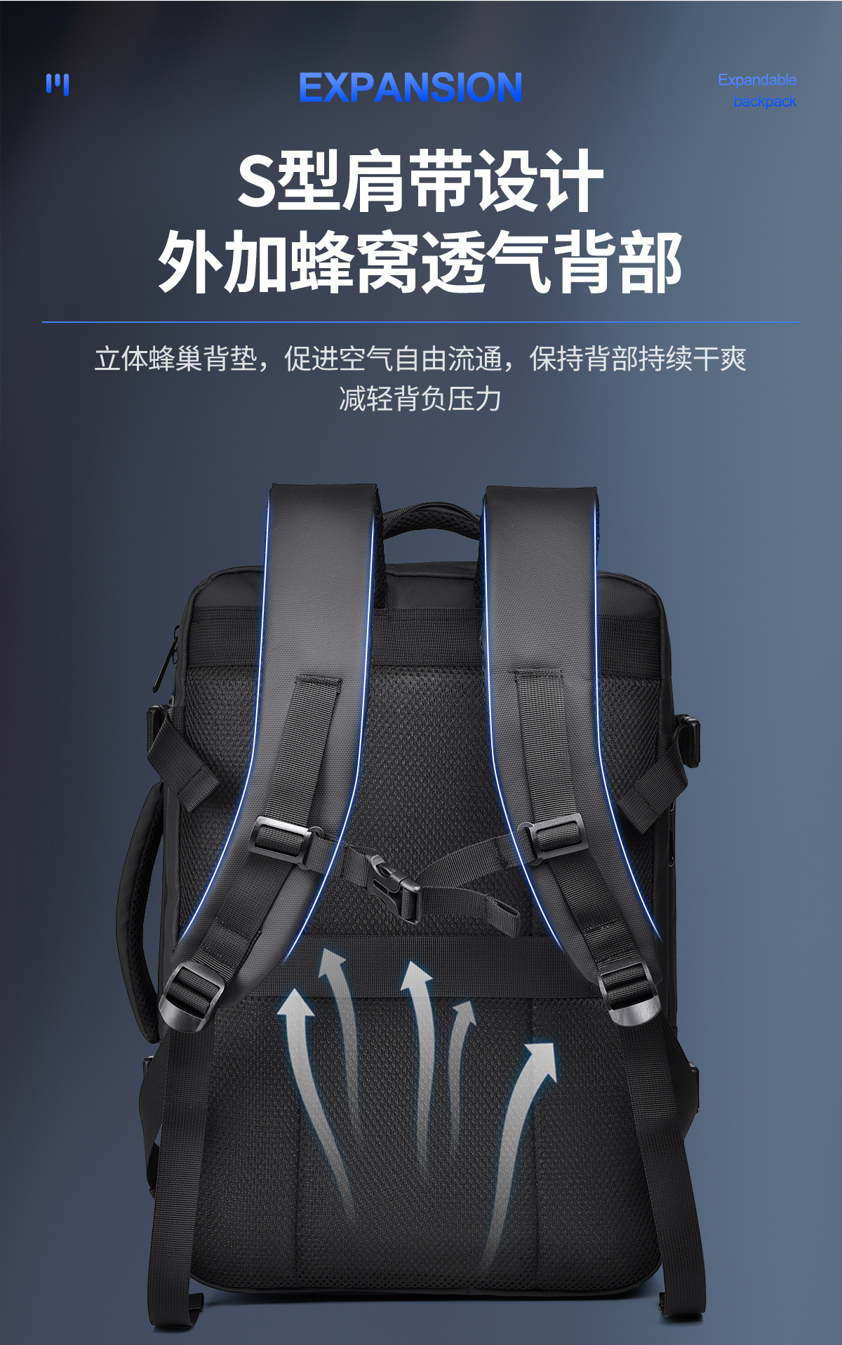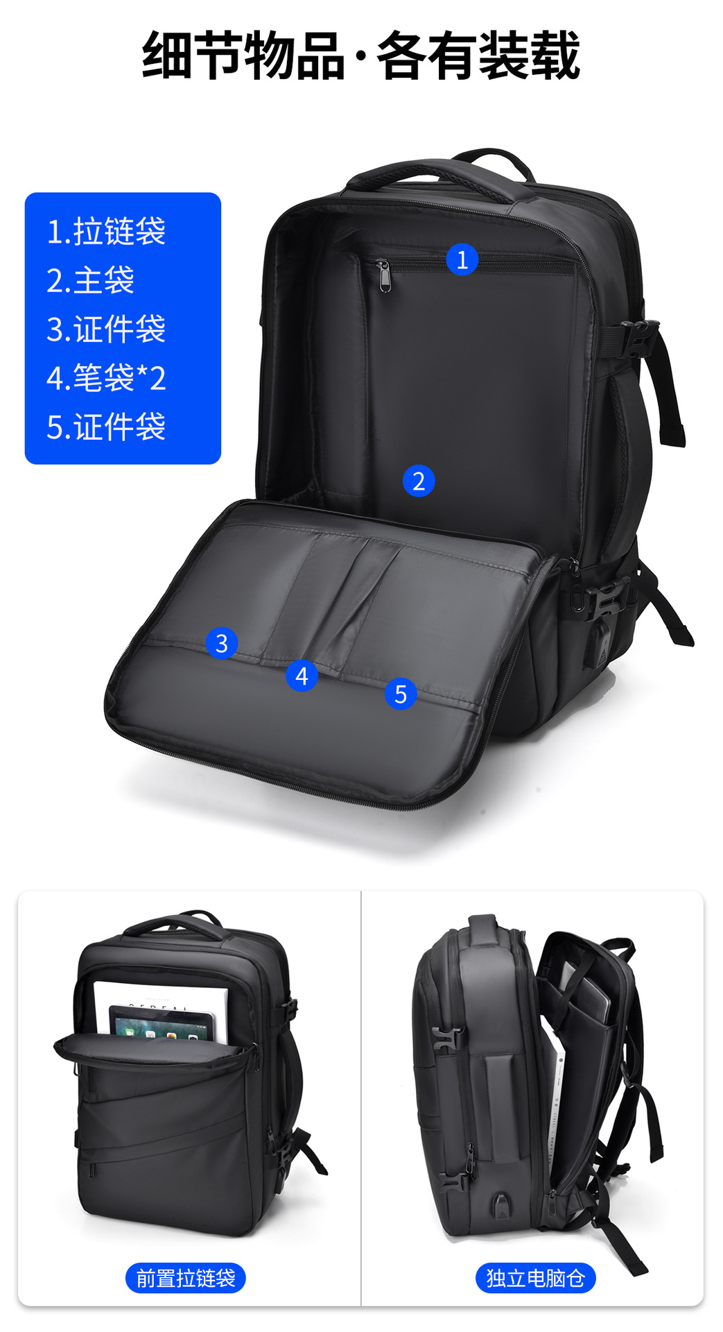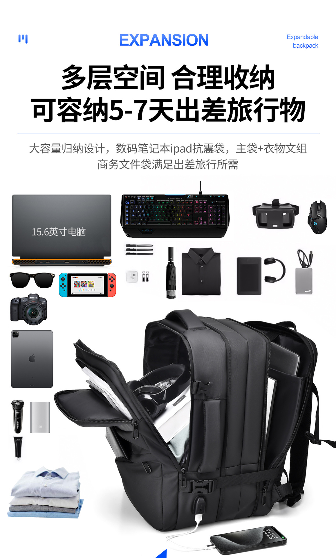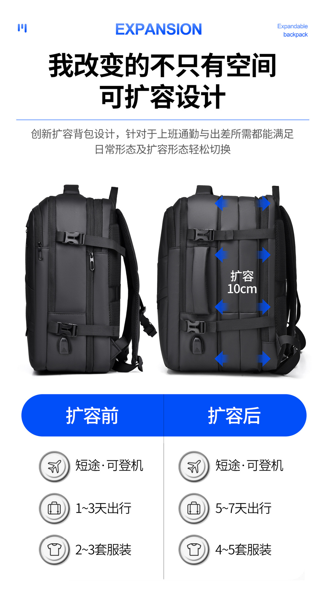 跨境新款商务双肩包可扩容大容量40L旅行背包多功能防水电脑背包