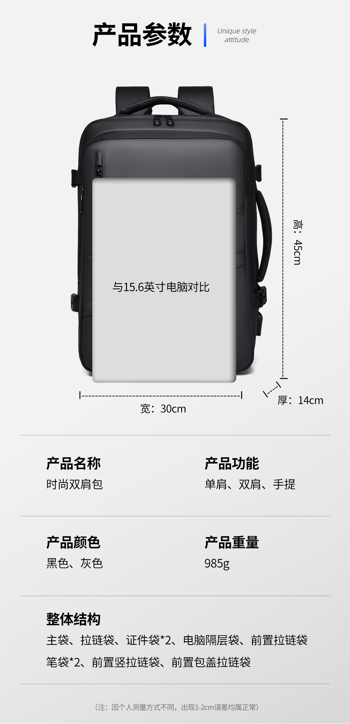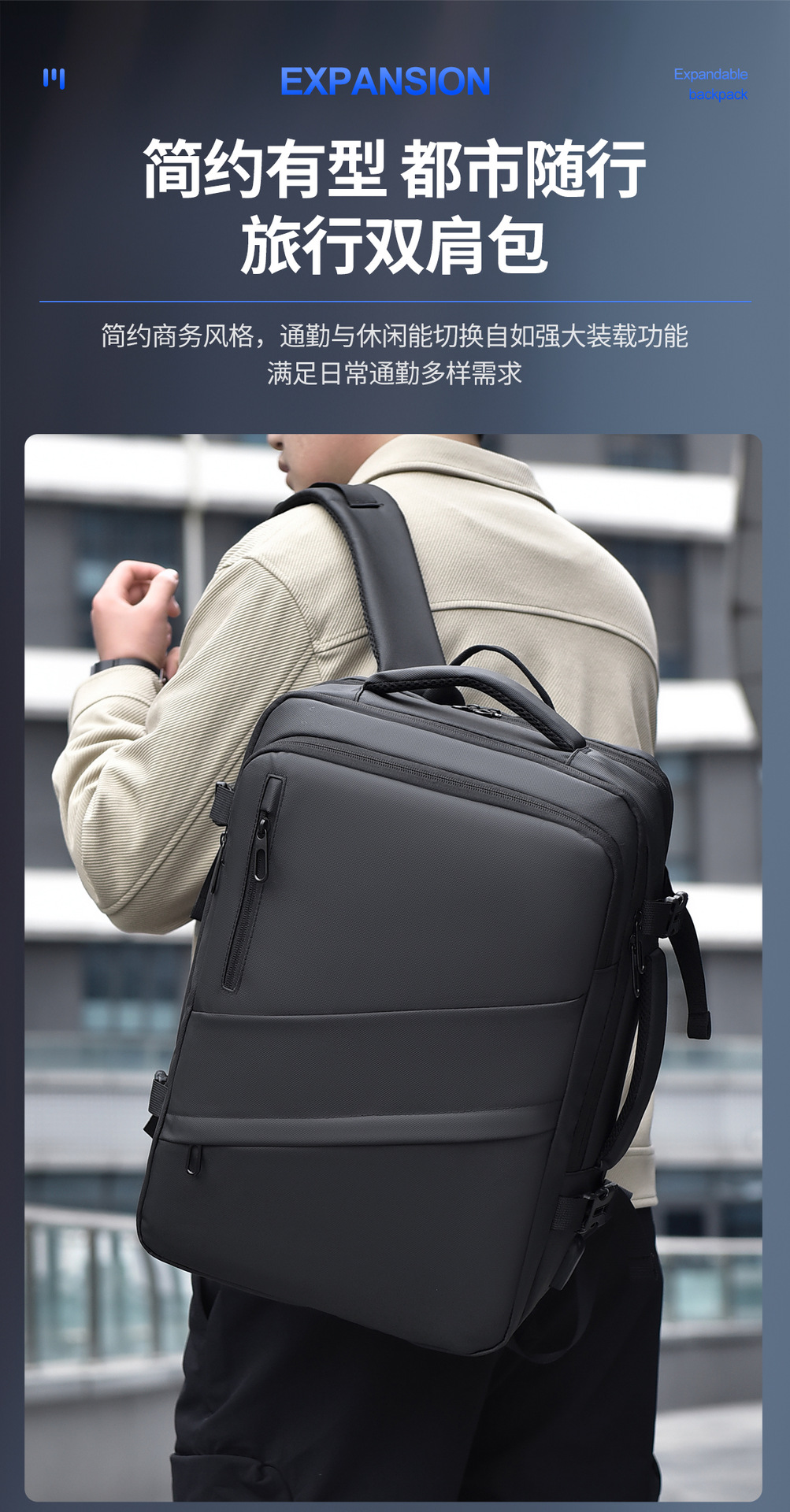 商务休闲双肩包可扩容大容量旅行背包新款跨境防水高级感电脑背包