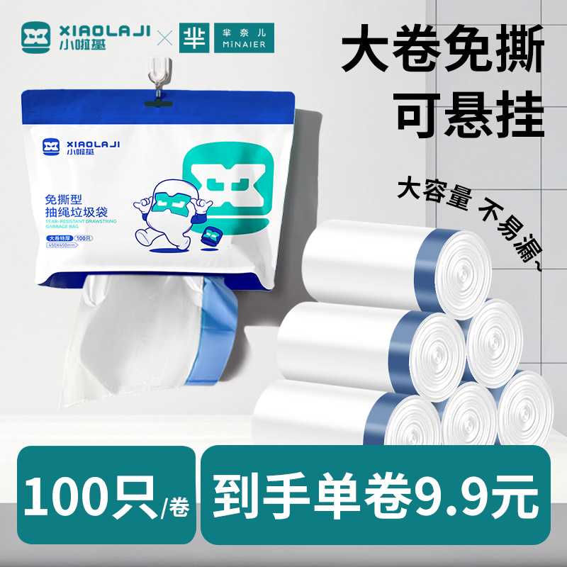 家庭用特厚ゴミ袋 大容量卸売 巾着式 破れにくい 100枚入り 家庭用持ち運び可能 厚手特大ゴミ袋