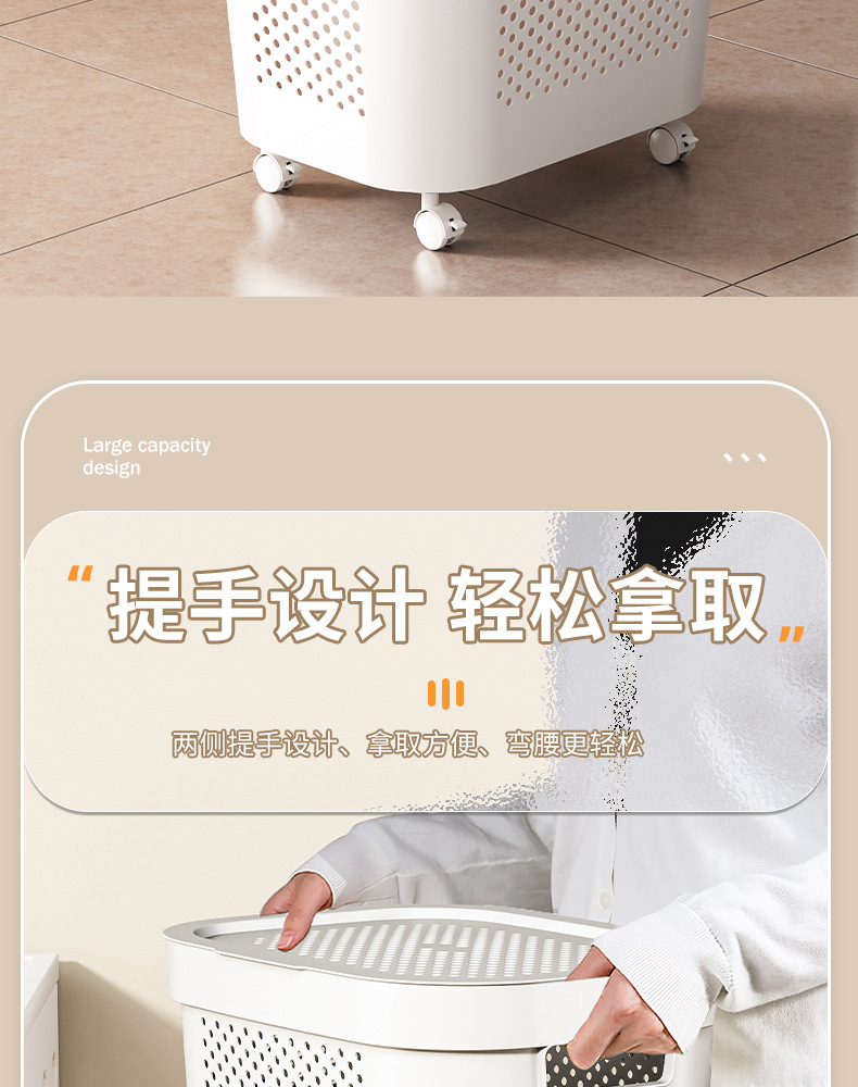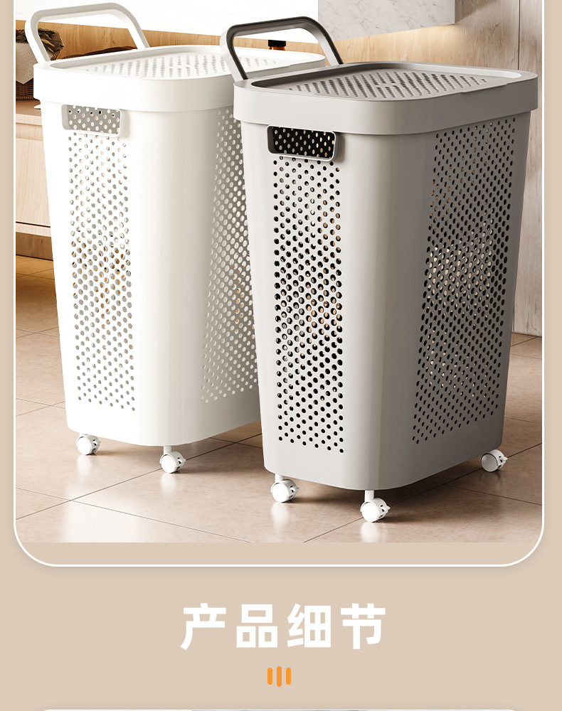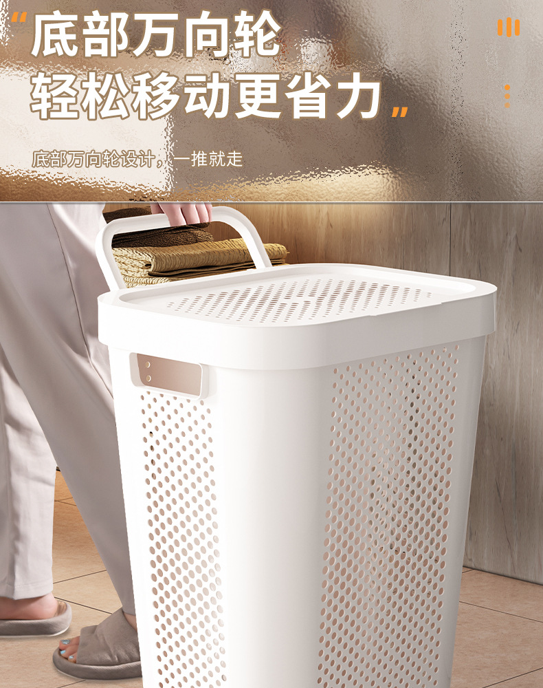超大号家用塑料带盖脏衣篮脏衣篓收纳筐可移动带轮卧室卫生间