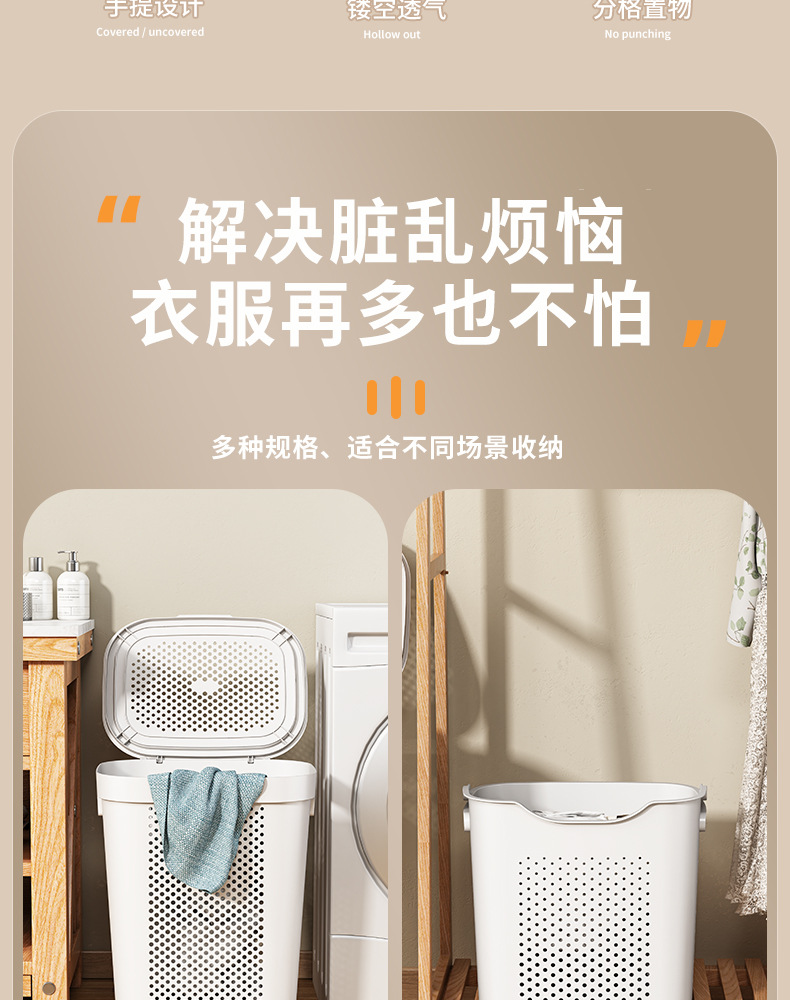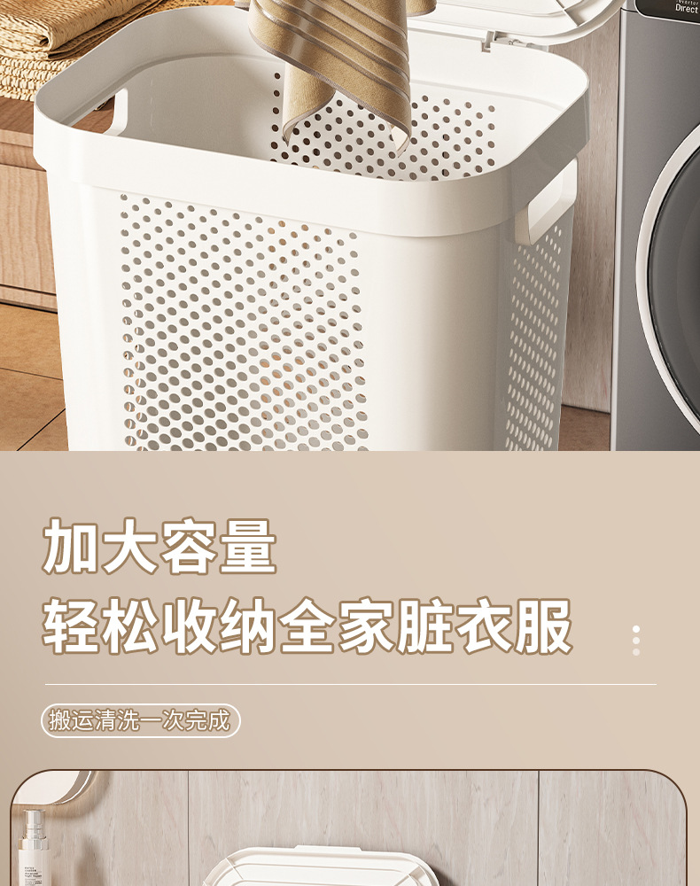 洗濯物収納バスケット家庭用トイレ浴室大容量カバー付き洗濯物入れ洗濯かご洗濯バスケット