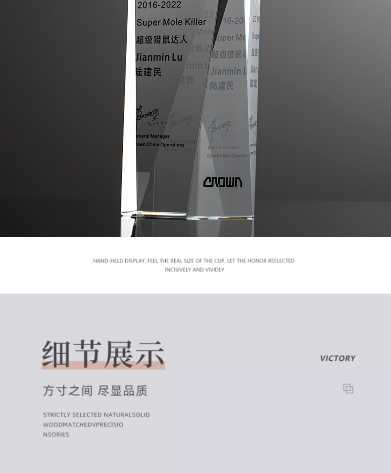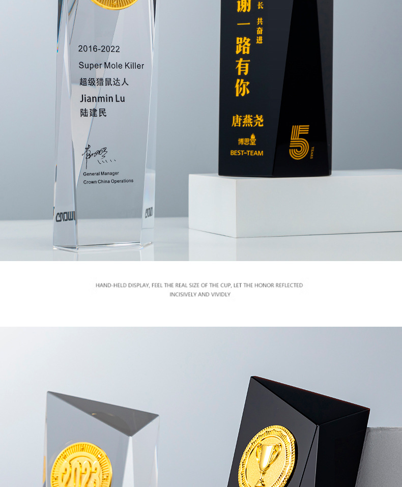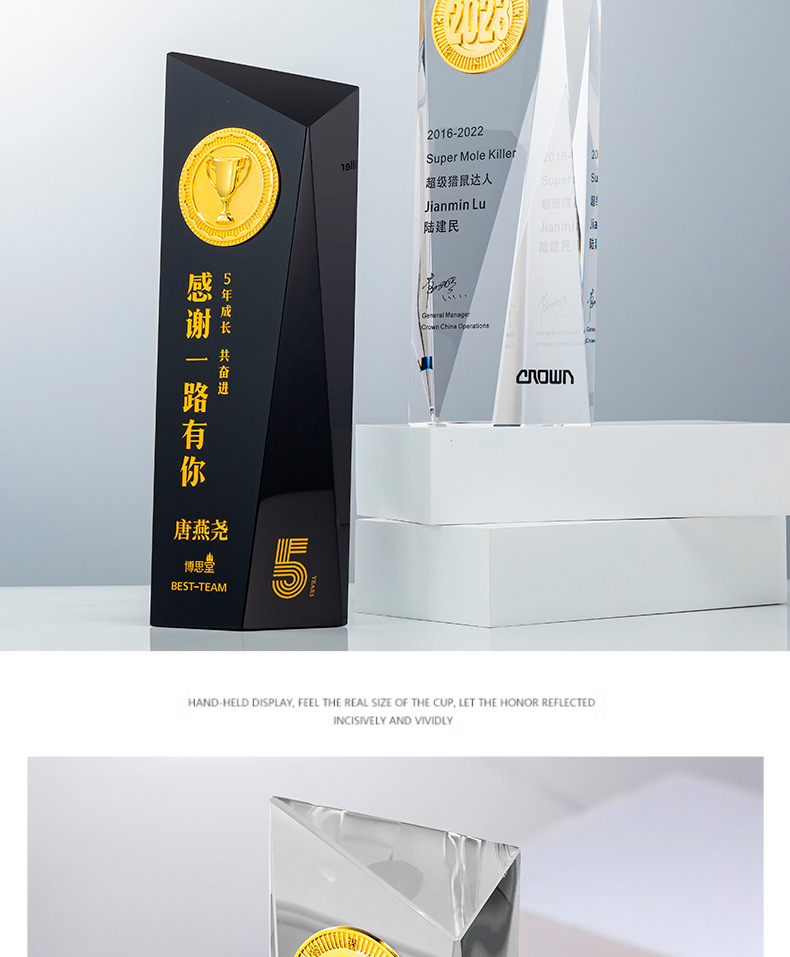 クリスタルトロフィー制作オーダーメイド創意山峰高級優秀社員スポーツ栄誉記念優勝トロフィー卸売り