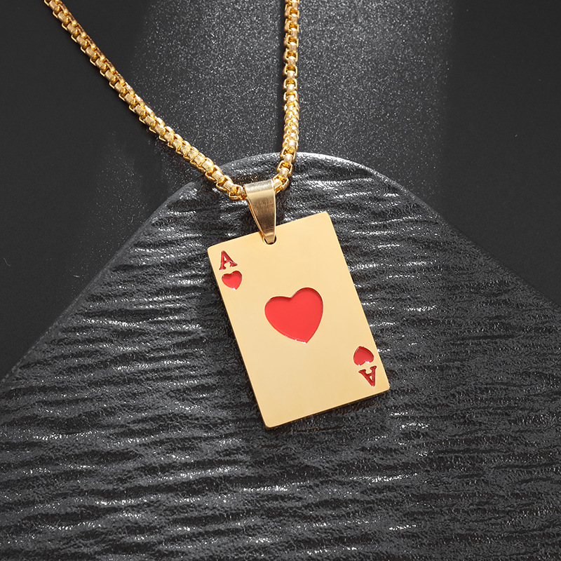 幸運なスペードのネックレスは人のアマゾンの個性の赤い桃のトランプのペンダントの潮がチタンの鋼の商品の供給源を掛けます。