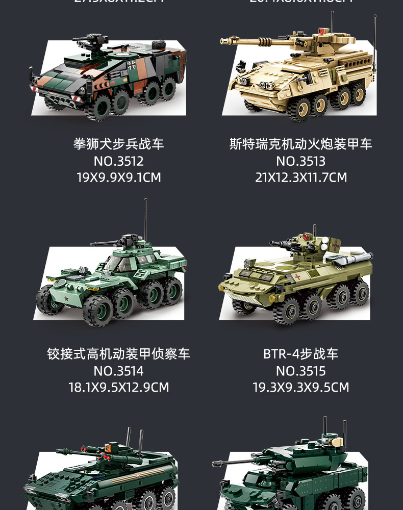 カラー 3511ヘマスロケット砲,3512拳獅子犬歩兵戦車,3513ストリック機動火砲装甲車,3514ヒンジ式高機動装甲偵察車,3515btr-4歩戦車,3516ブーメラン歩兵戦車,3517ジャガー防空装甲車