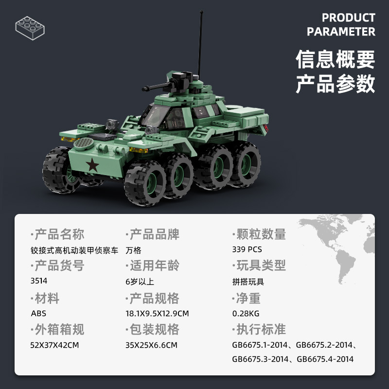 万格の積み木の国産の小さい粒子はある高積み木の3510-3517第二次世界大戦の装甲車の防空車の模型と互換性があります。