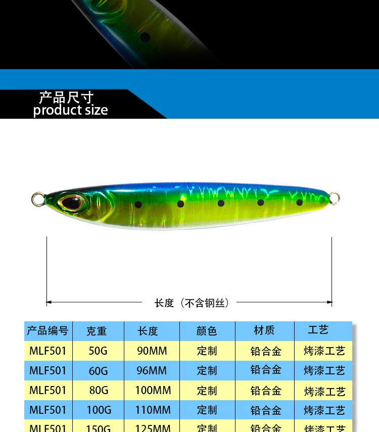 長条速沈快抽出路亜鉄板快沈レーザー夜光路亜偽餌南油金銃専用餌の重さ
