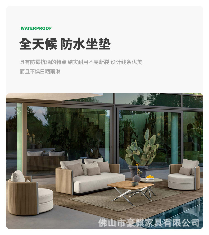 北欧屋外ソファホテル庭園実木家具セット民宿ベランダレジャーチーク材ソファセット