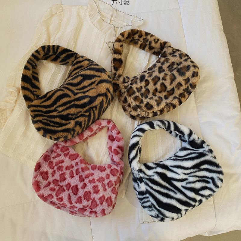 ヒョウ柄のパイル生地の女性バッグ秋冬の新しいファッショントレンドシングル肩脇下バッグ
