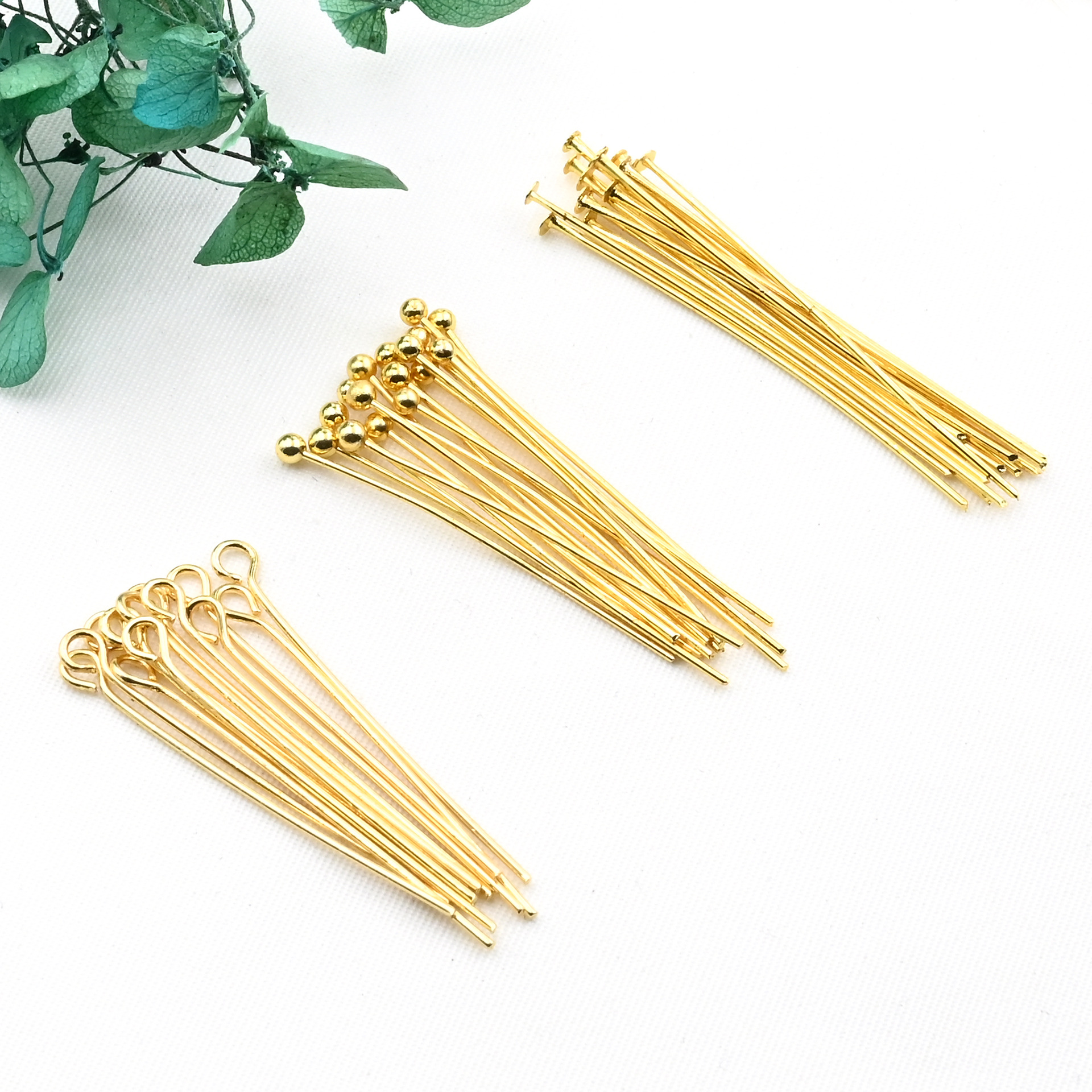 14K金メッキ九字針 T字針 球針 DIY手芸ビーズ針 ジュエリーアクセサリー材料 色落ち防止 本金メッキ