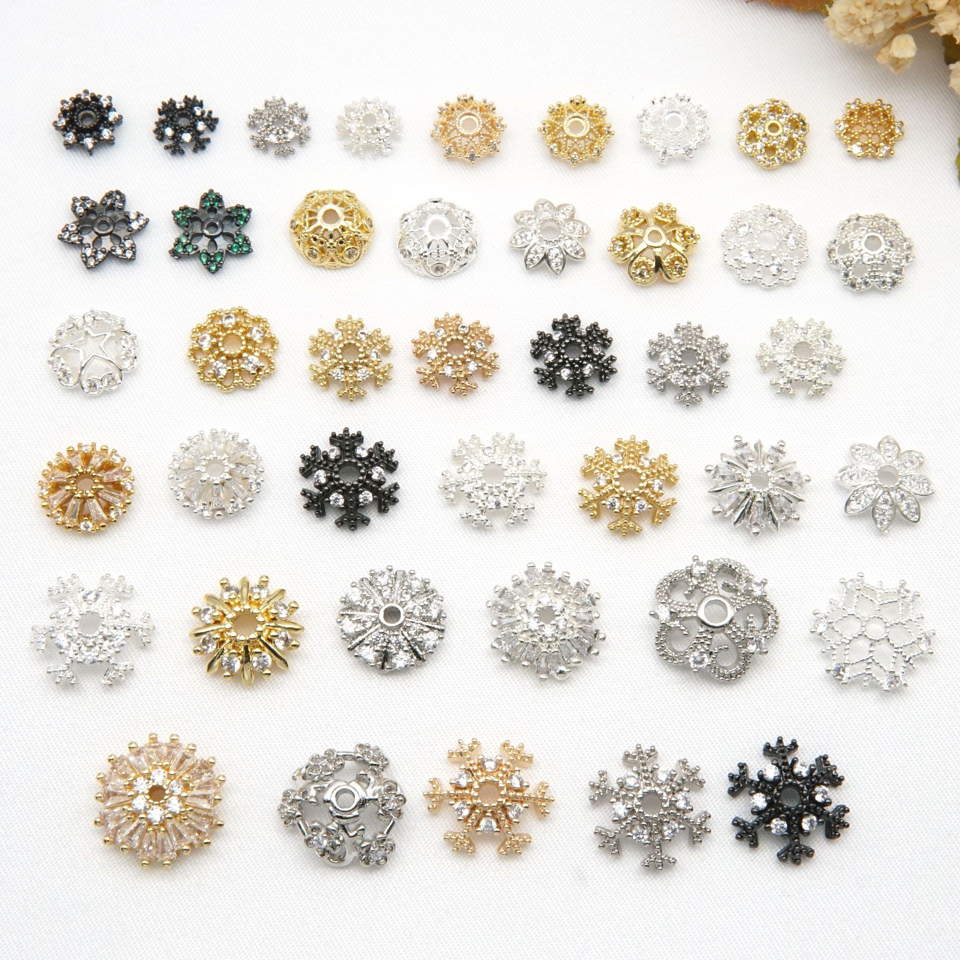 18k金色のホワイトゴールドの銀の大きいサイズの花の托のマイクロはジルコンのアクセサリーの部品のスペーサーの花の帽子のビーズの材料を挿します