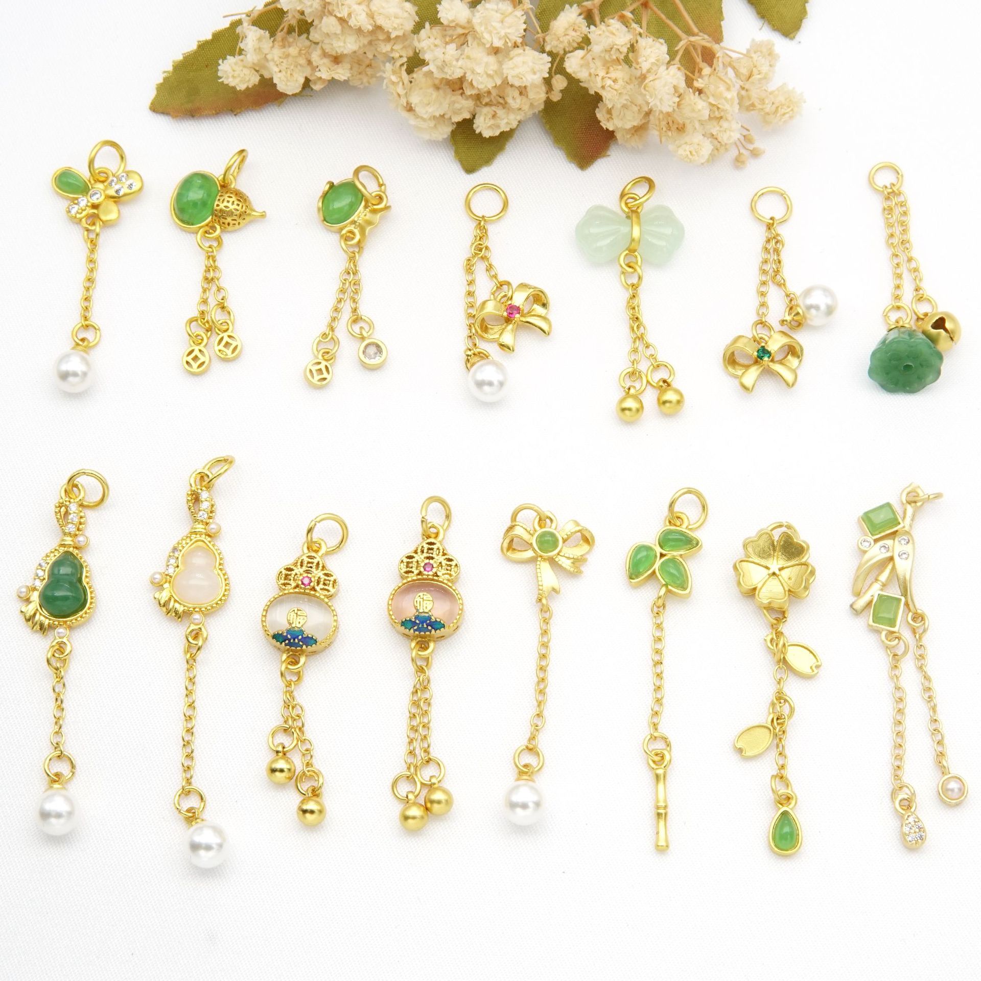 古法色保全ひょうたんタッセルペンダント、石象嵌蓮蝶結びペンダント、ブレスレット、ネックレス、アクセサリー卸売
