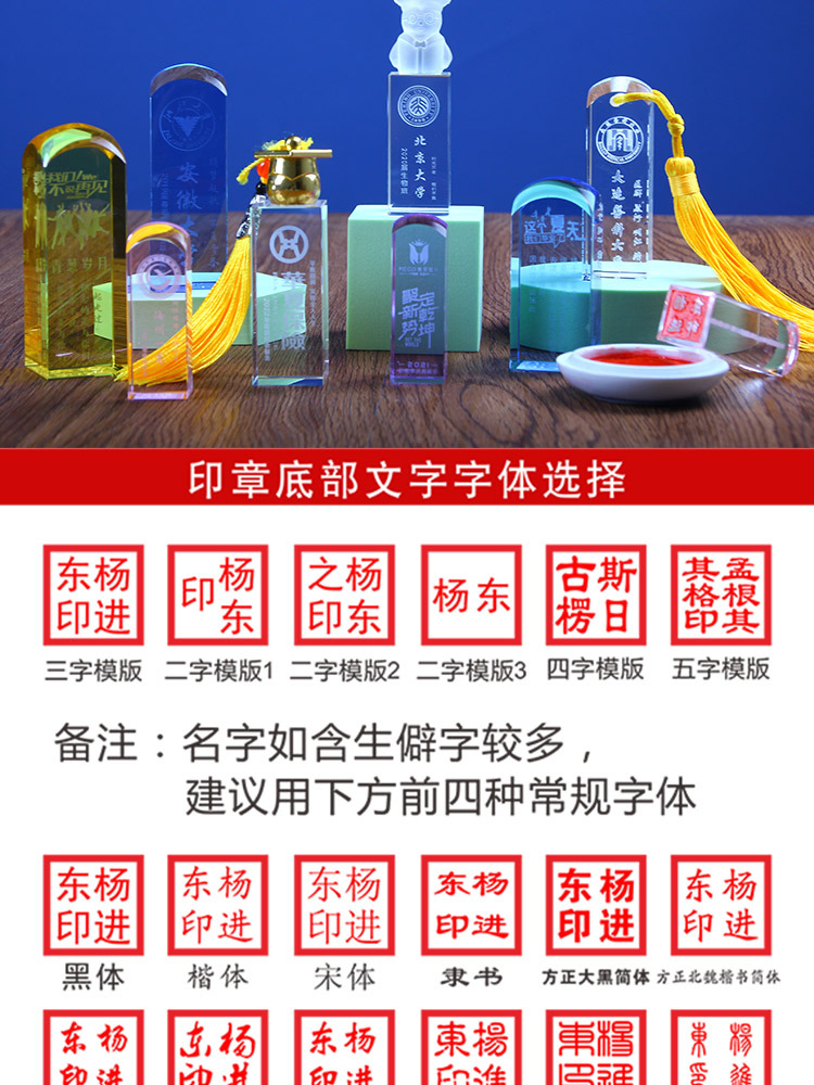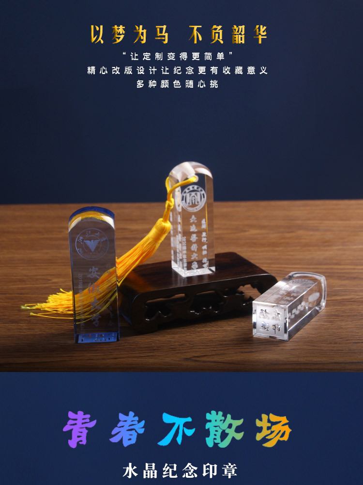 卒業シーズン水晶印鑑高級記念品学校記念イベント記念プレゼント集団クラス創意実用彫刻
