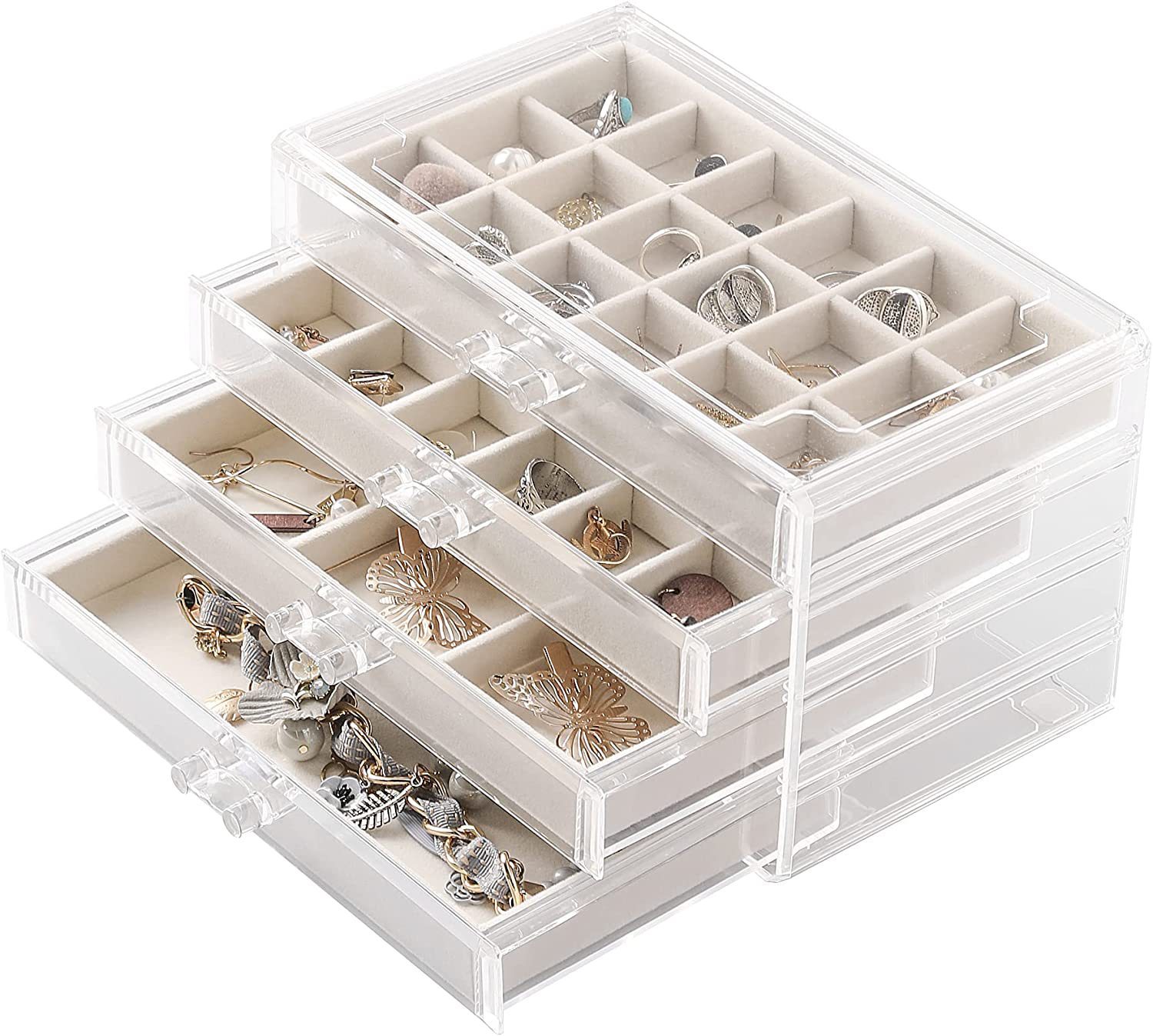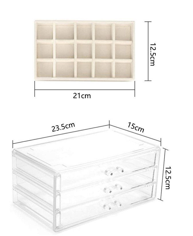 ベージュベルベットアクセサリーケース3/5層アクリル引き出しアクセサリーネックレス整理ケースイヤリング指輪ジュエリー収納