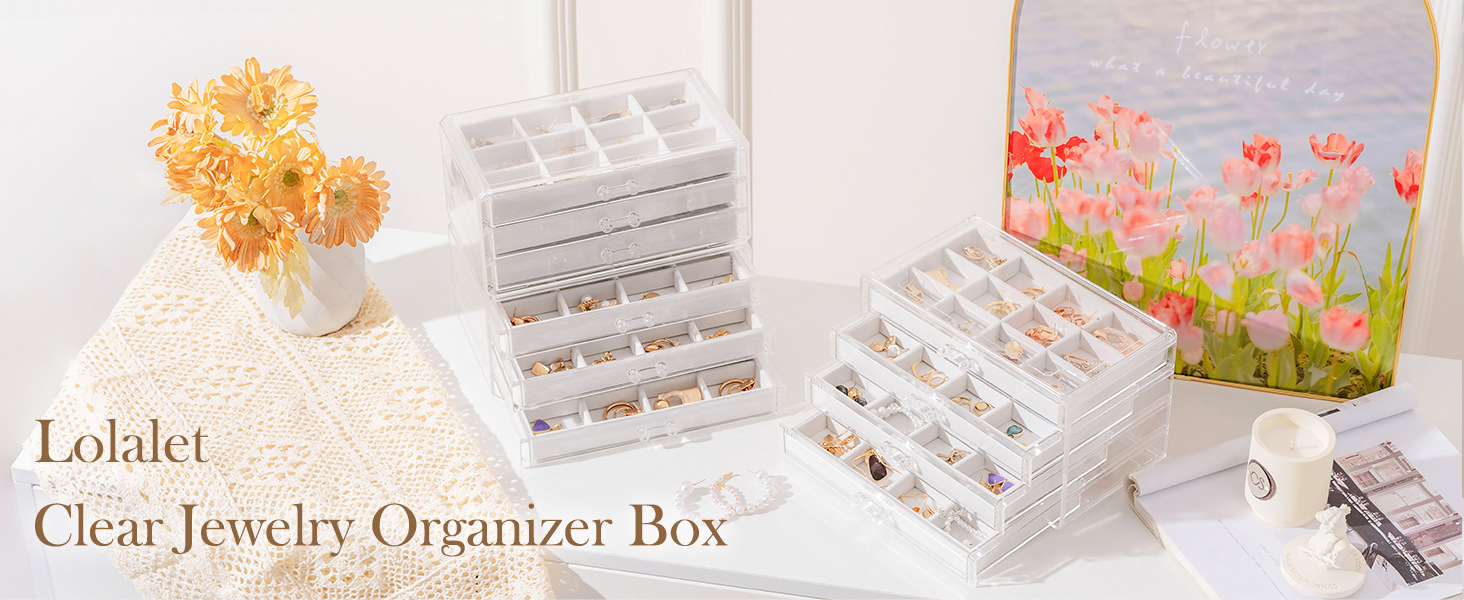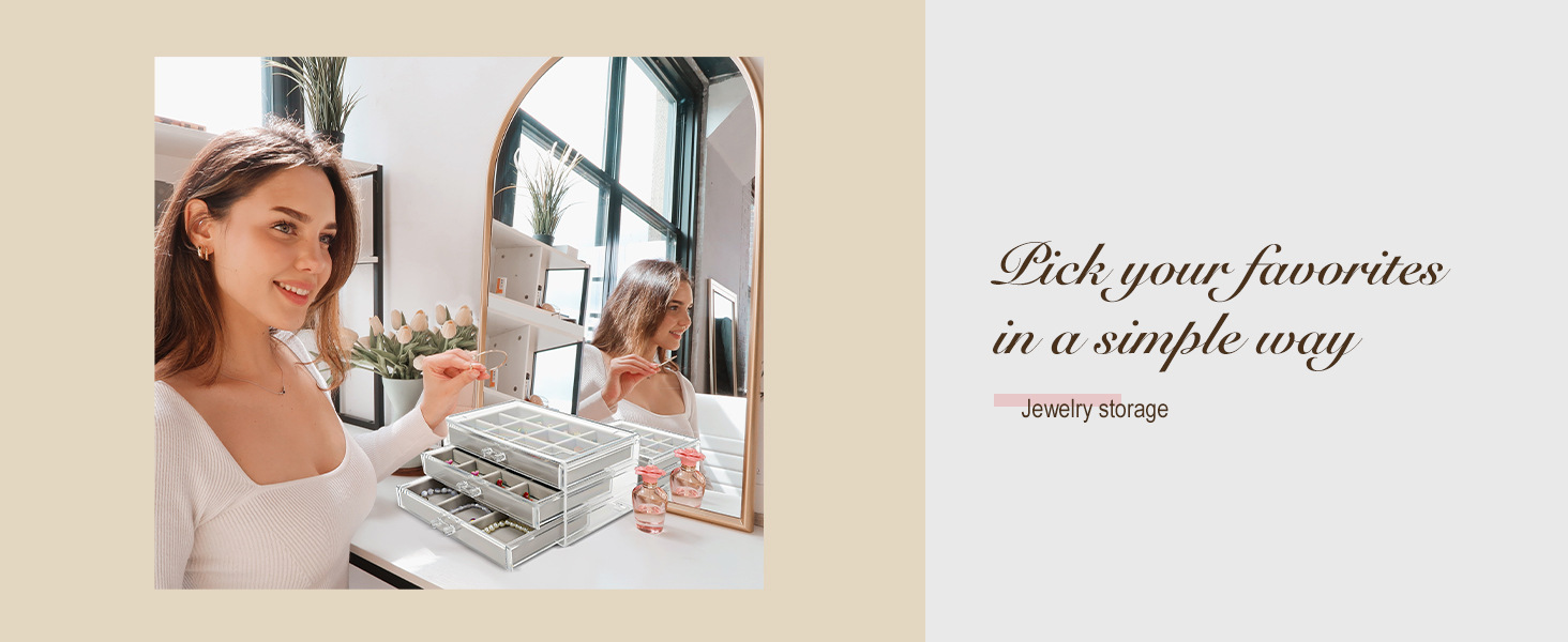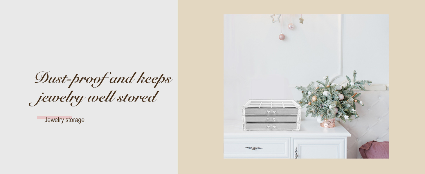 ジュエリーボックス 三層アクリルジュエリー収納ボックス 引き出し式イヤリング、イヤリング、指輪用ジュエリーボックス 省スペース