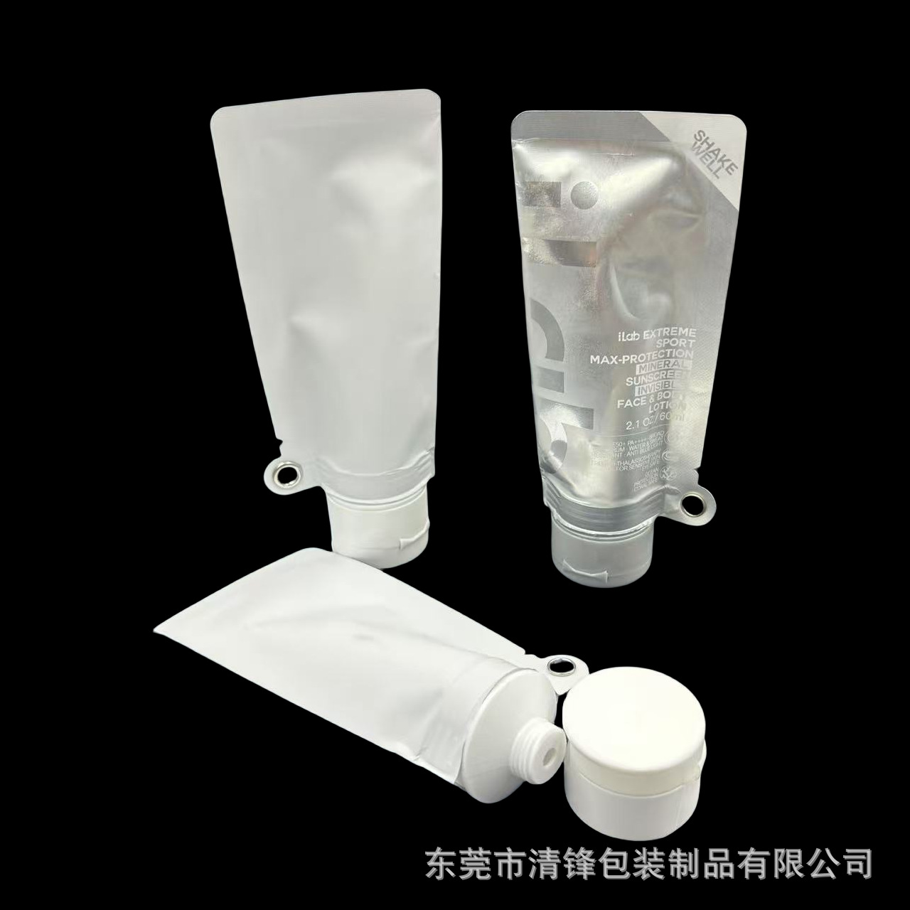 工厂60ml白色牛皮纸打孔吸嘴袋 化妆品翻盖 防晒霜遮瑕精华液袋