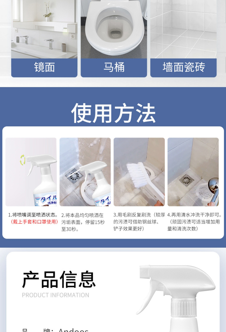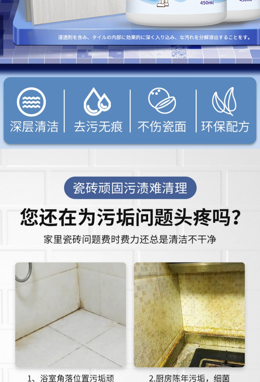 タイル洗浄剤トイレ浴室ガラス水垢トイレ強力汚れ除去トイレ床タイル汚れ除去家庭用