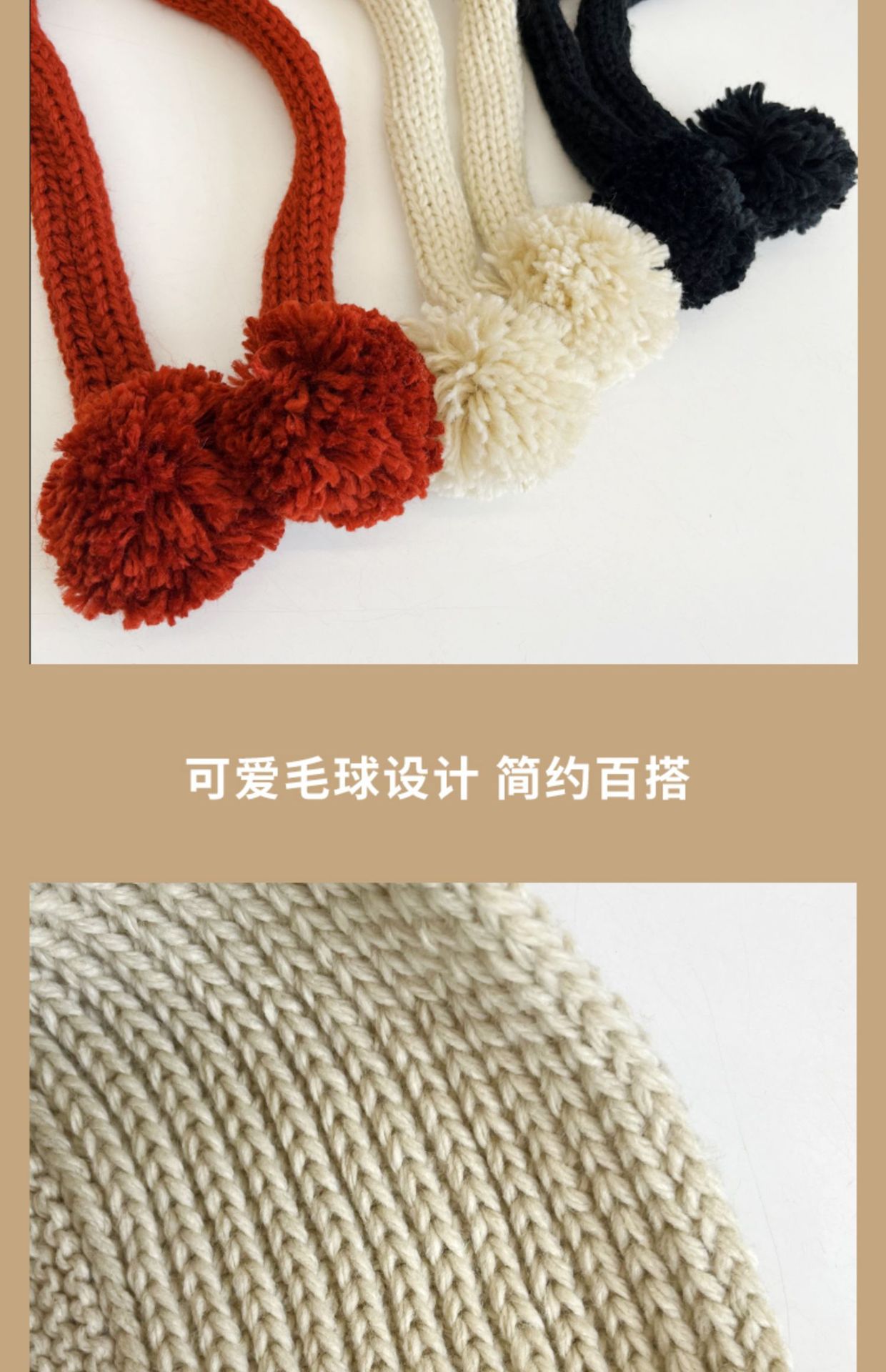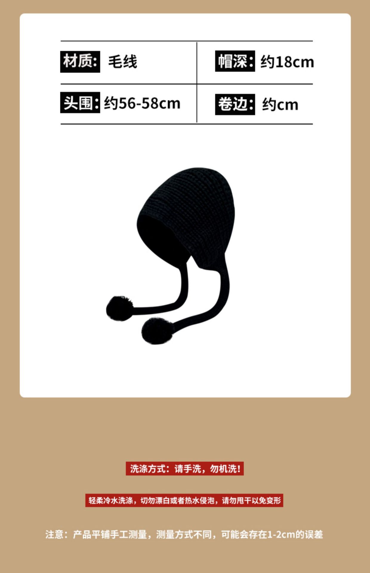 手工编织纯色长系带日系软妹毛线帽女冬天加厚保暖护耳针织雷锋帽