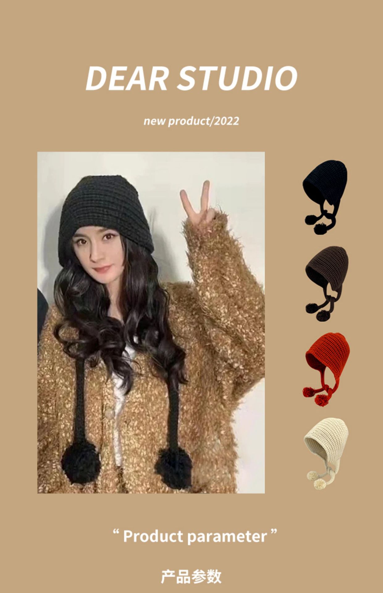 楊冪同モデルの黒い毛糸帽子の子供と秋冬の保温耳保護学生の百合ネットの長いお下げのニット帽子のファッション