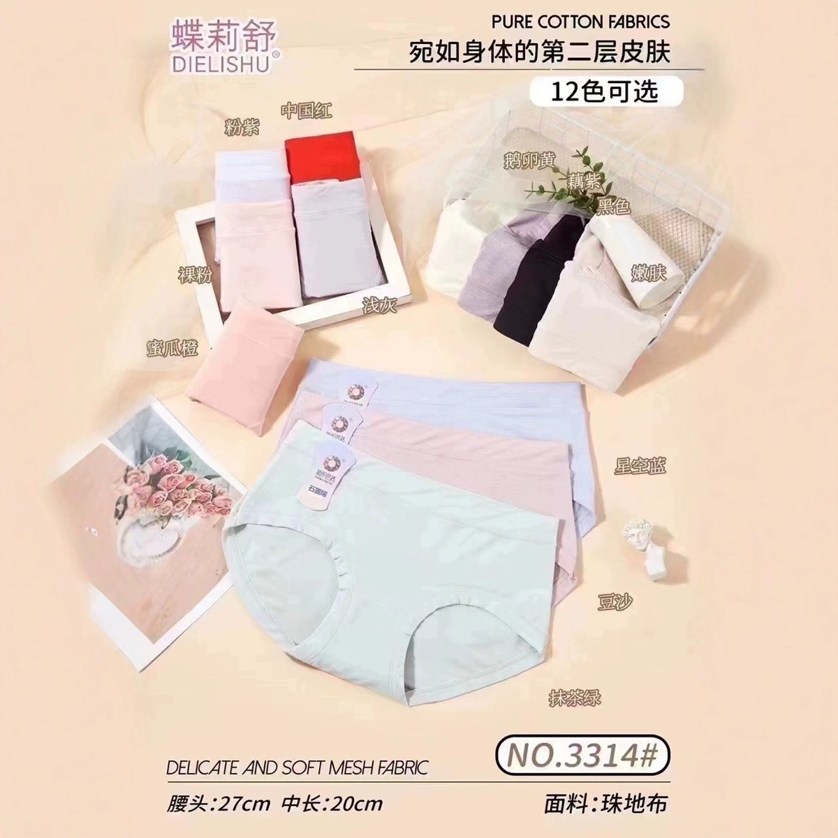 2025蝶莉舒3314クラシックモデル小版中腰シンプル少女快適三角パンツ3314