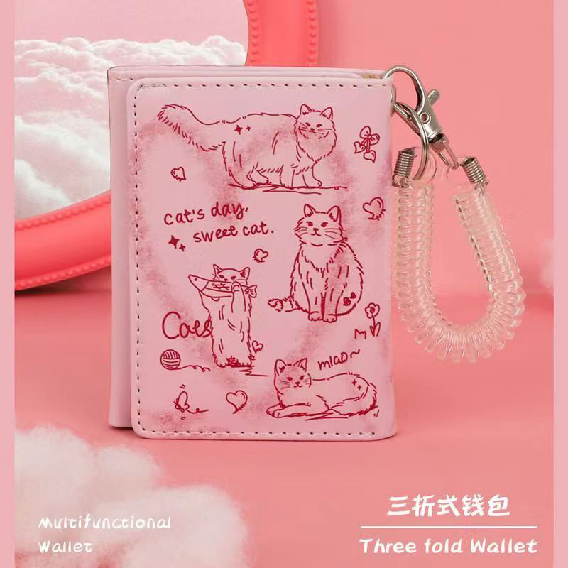 クロスボーダー 2025 新しい猫カードホルダーレディースコンパクトインターネットセレブかわいいマルチカードスロットカードホルダーハイエンド漫画小銭入れ