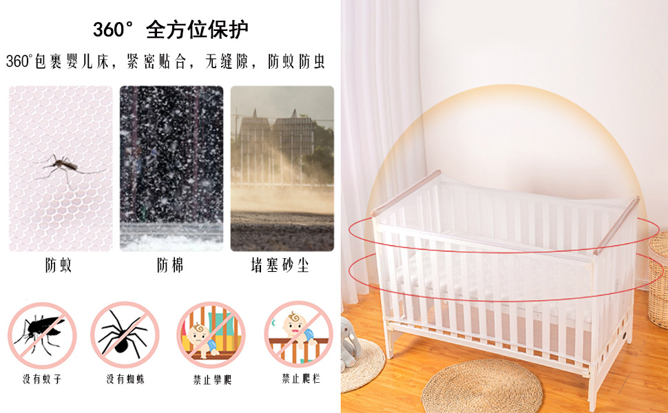 名称:婴儿车蚊帐婴儿围栏床蚊帐婴儿保护罩防虫网便携式蚊罩加密蚊帐
