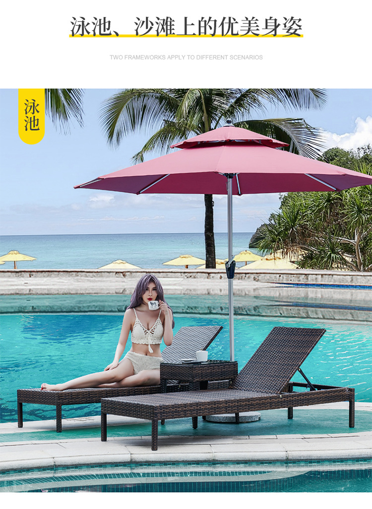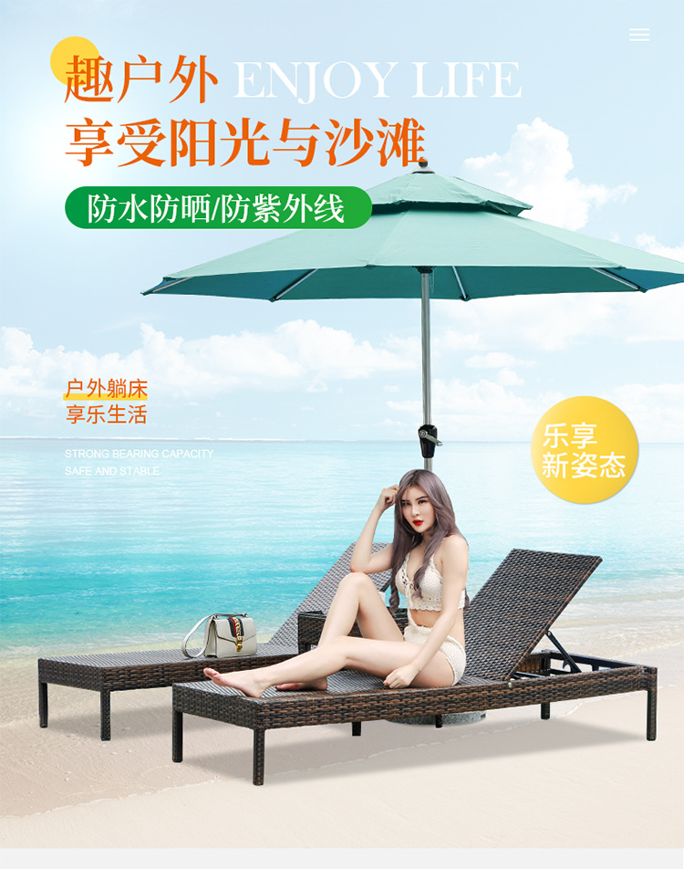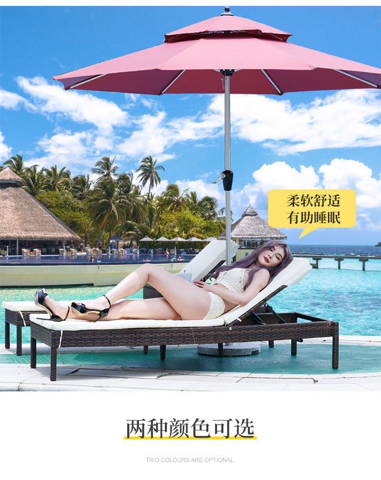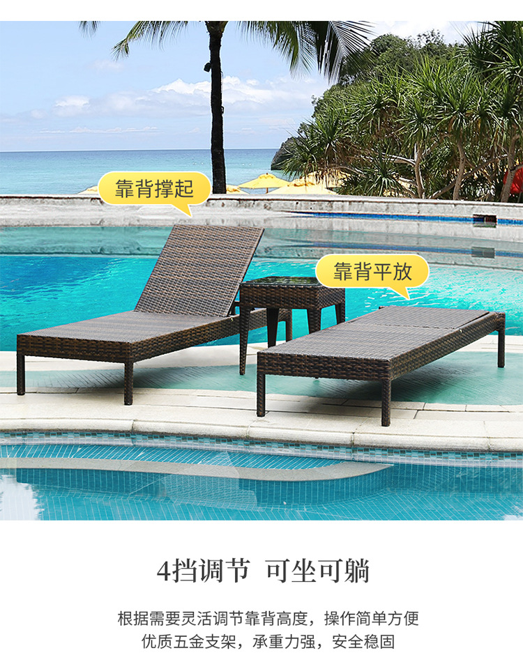户外躺床游泳池躺椅休闲沙滩椅别墅庭院大露台休息长椅藤编躺椅子
