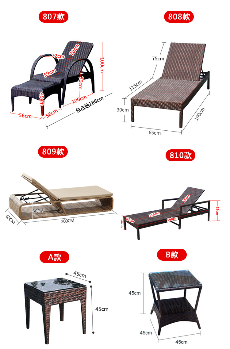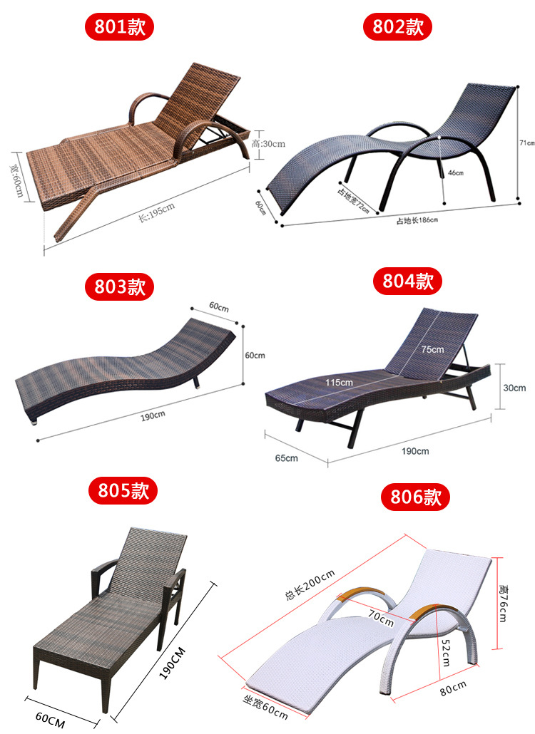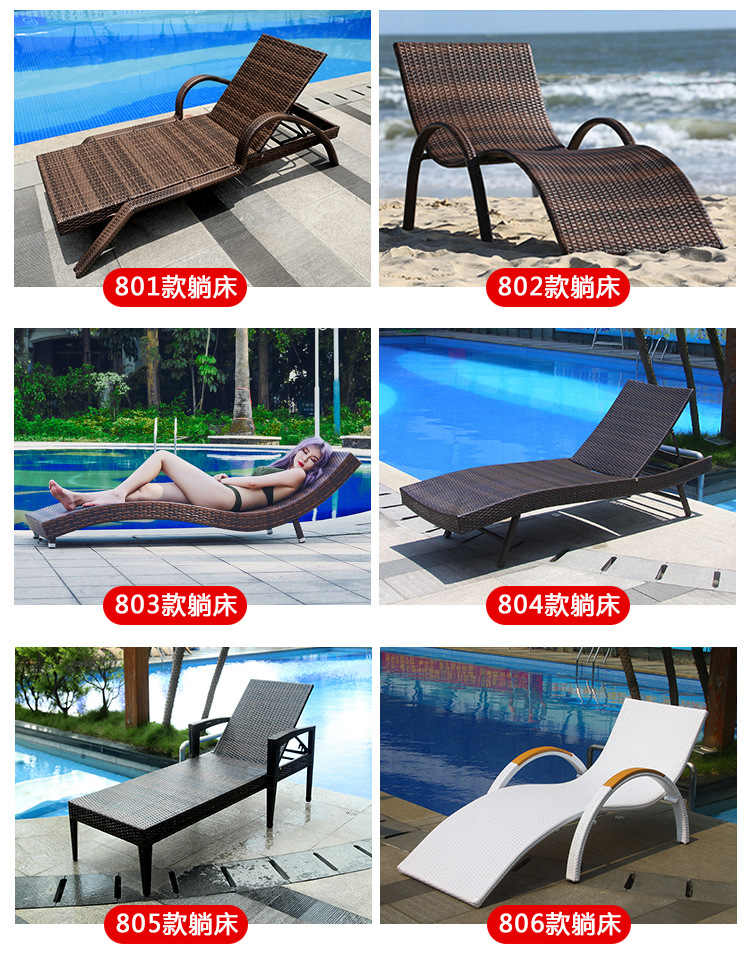 屋外リクライニングチェア防水プールビーチ庭ガーデンホテルテラスカジュアルシンプル籐編みリクライニングチェア